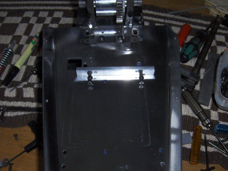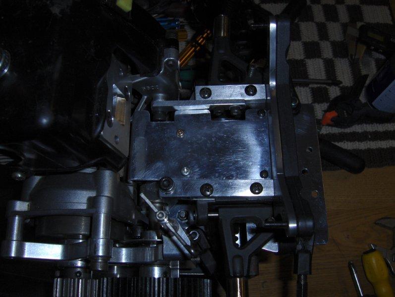 tjena,lite fler bilder på bygget,jag ,,som nog många andra har problem med är att motorn har en viss tendens att vilja flytta sig,så tror jag nog att med dessa lösningar ska jag nog komma ifrån detta problemet, med denna lösning,,,,,,,,har även tillverkat ett par nya anslag tii fjädringsvägen då originalen i plast inte håller nått vidare,,