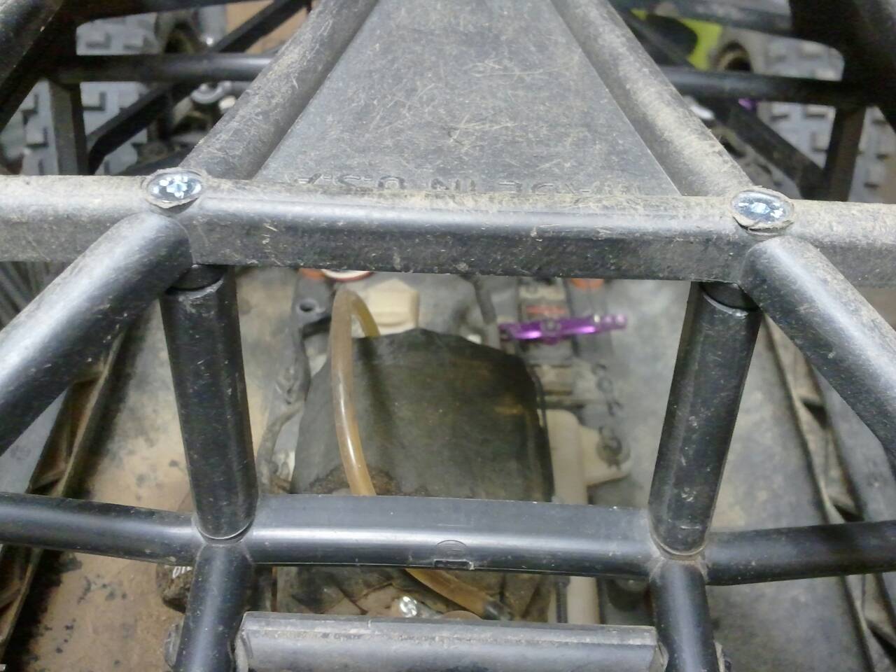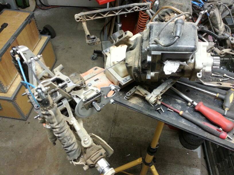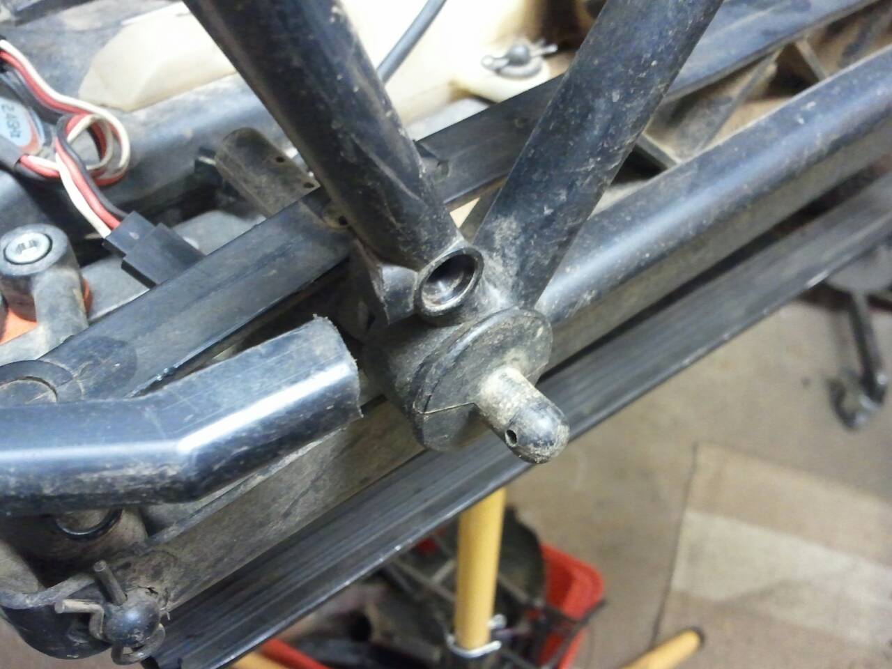 Den var i behov av lite ompyssling då en sidobalk gått av och de två skruvarna till bakre krysstaget gått av uppe mot taket.