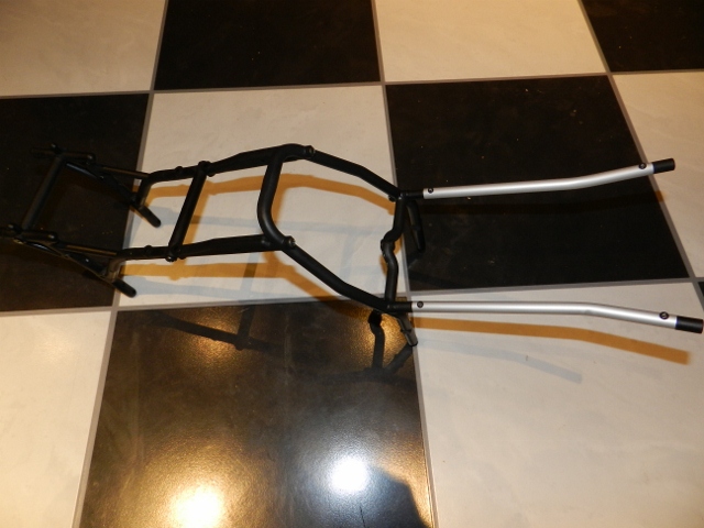 , sen vart jag sugen och kolla hur det såg ut med monsterhjul på chassit , sen satte jag i hop störtburen och det var det jag hann med och göra i dag