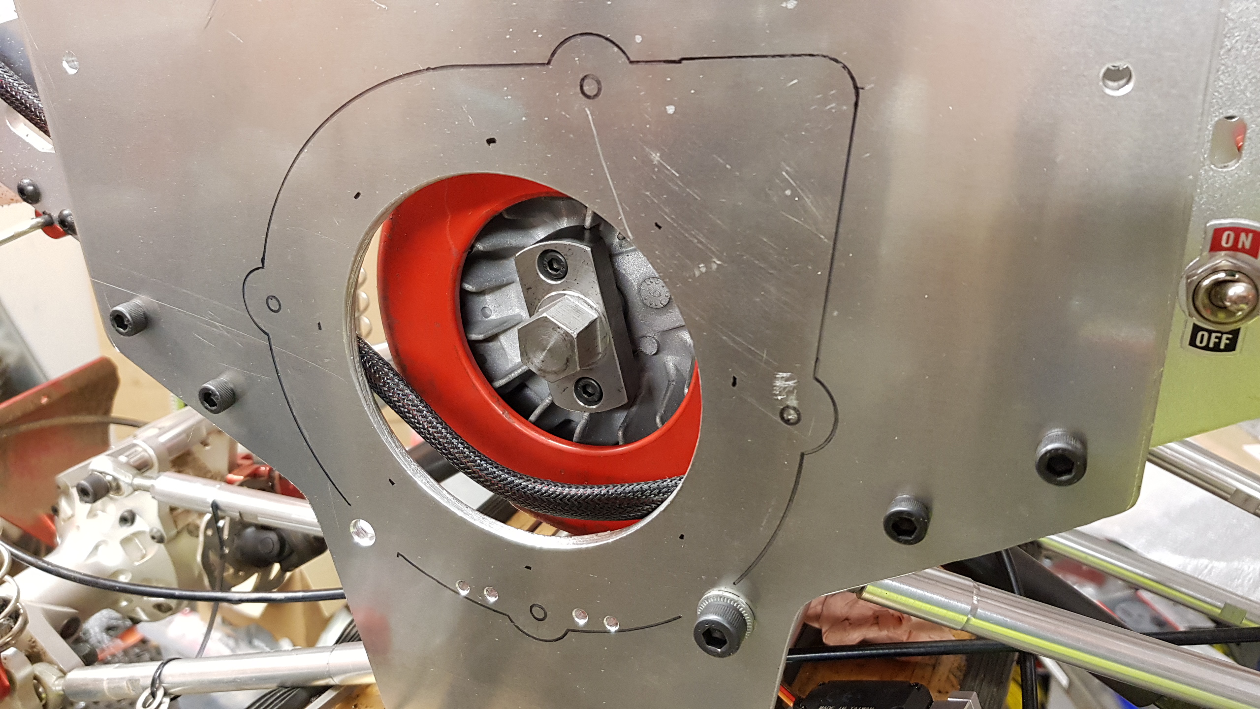 Dragstarten kommer från en CF Moto 500cc och väger runt 1.5kg när den är klar, och den extra vikten klarar jag mig utan när den ska lyftas.