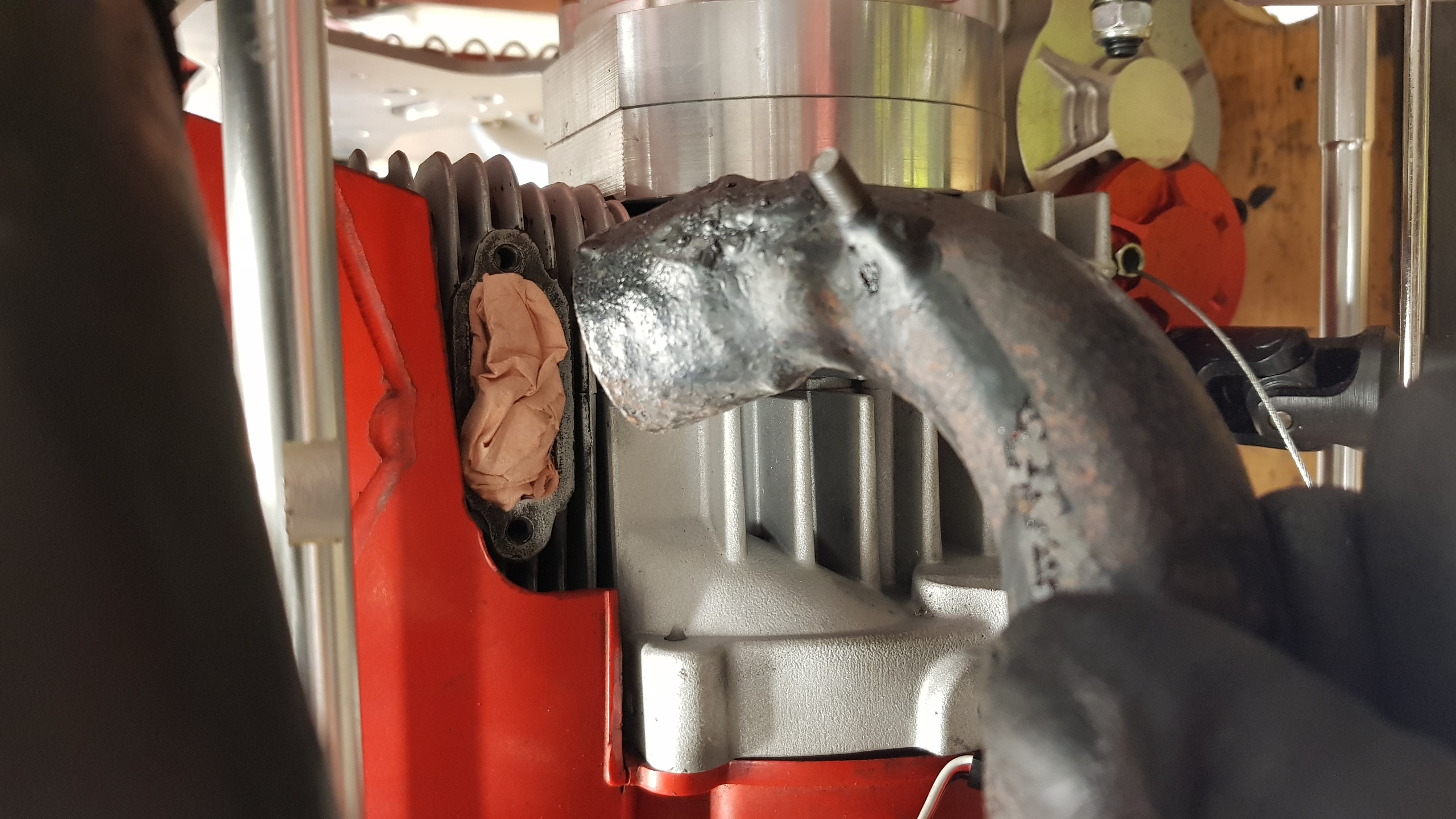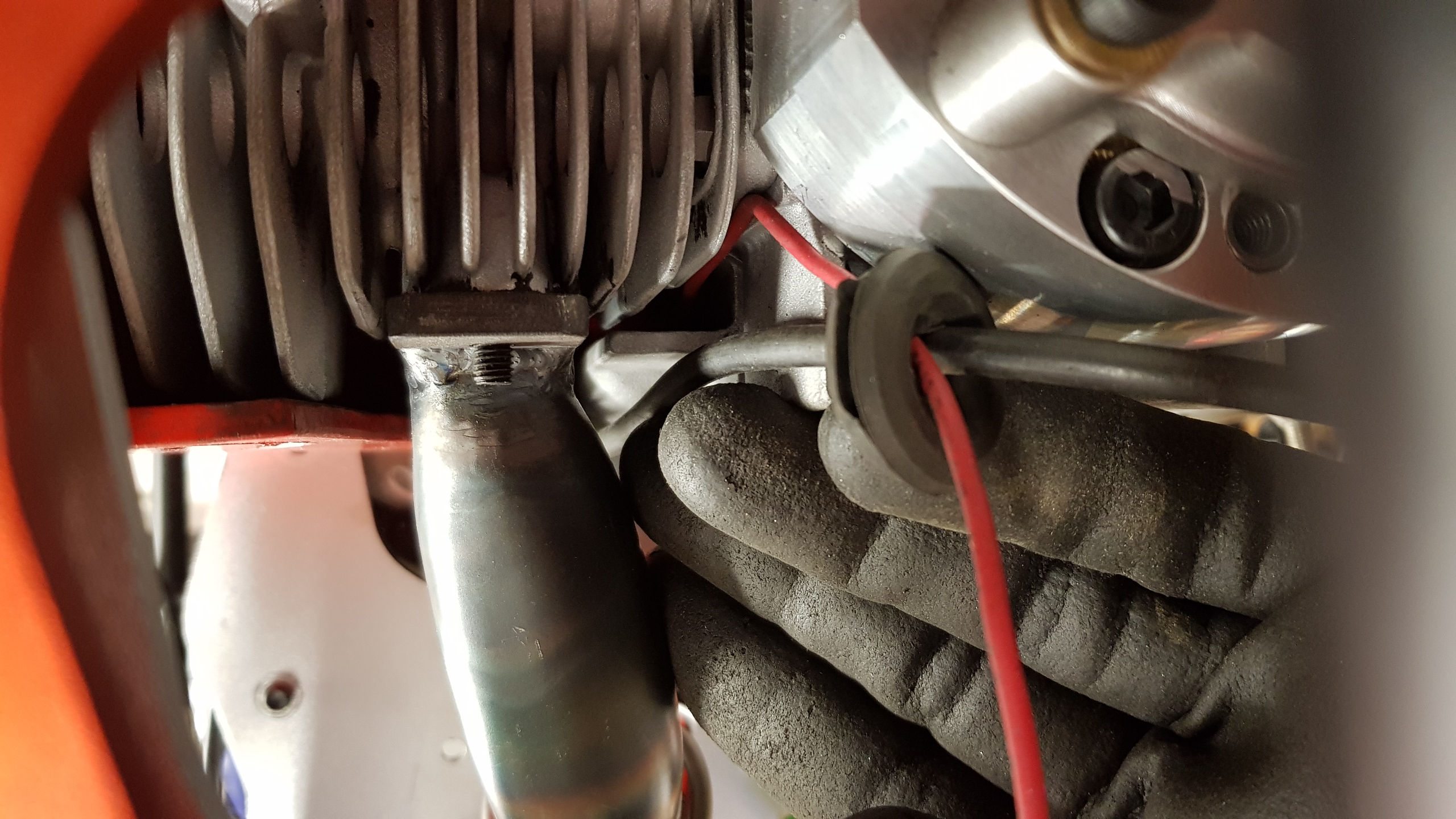 Blev helt omöjligt att lösa utan en 90° vinkel direkt på avgasporten.