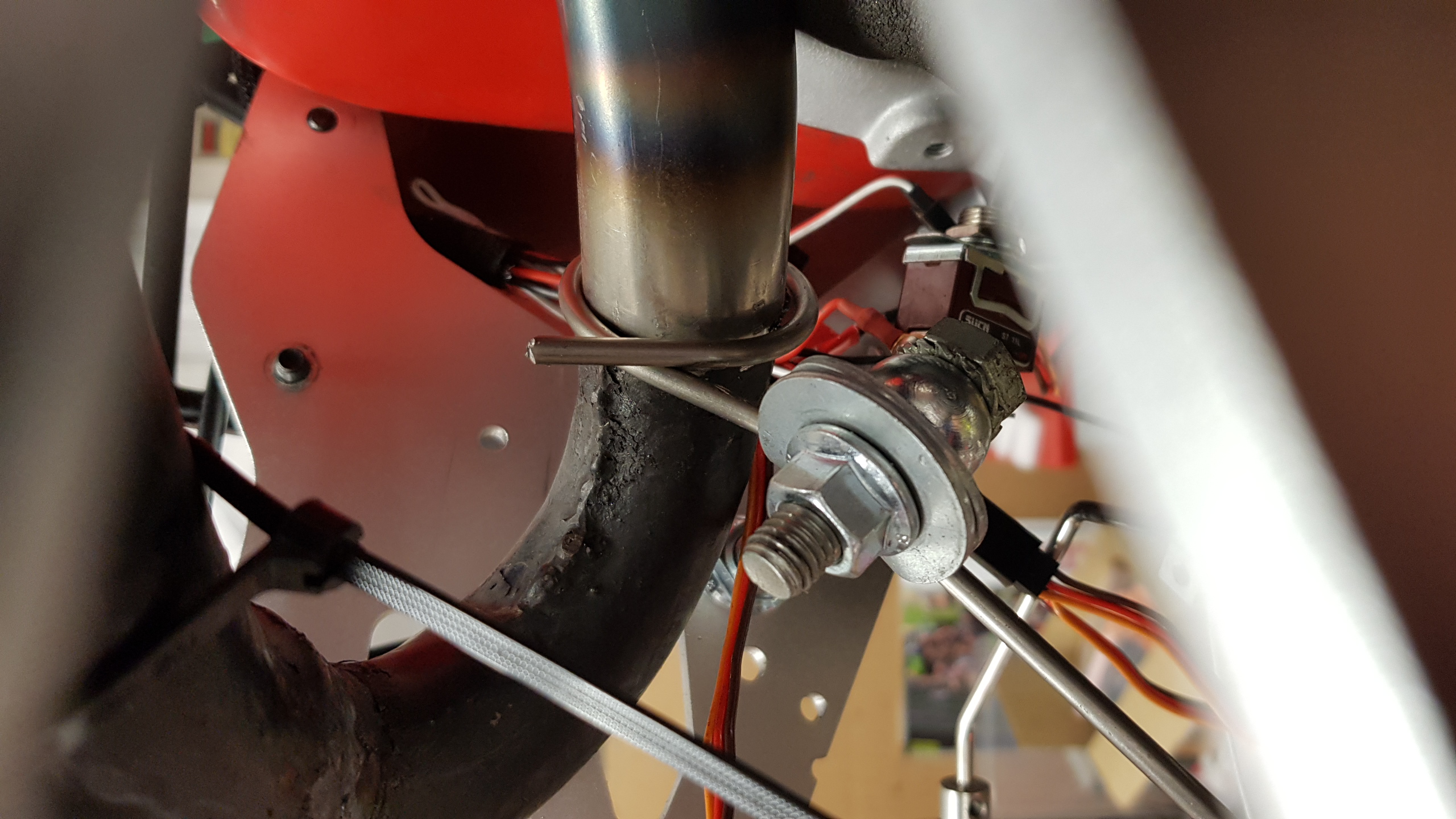 Till hjälp att rikta rördelarna gjorde jag ett simpelt fäste till en kraftig järntråd.