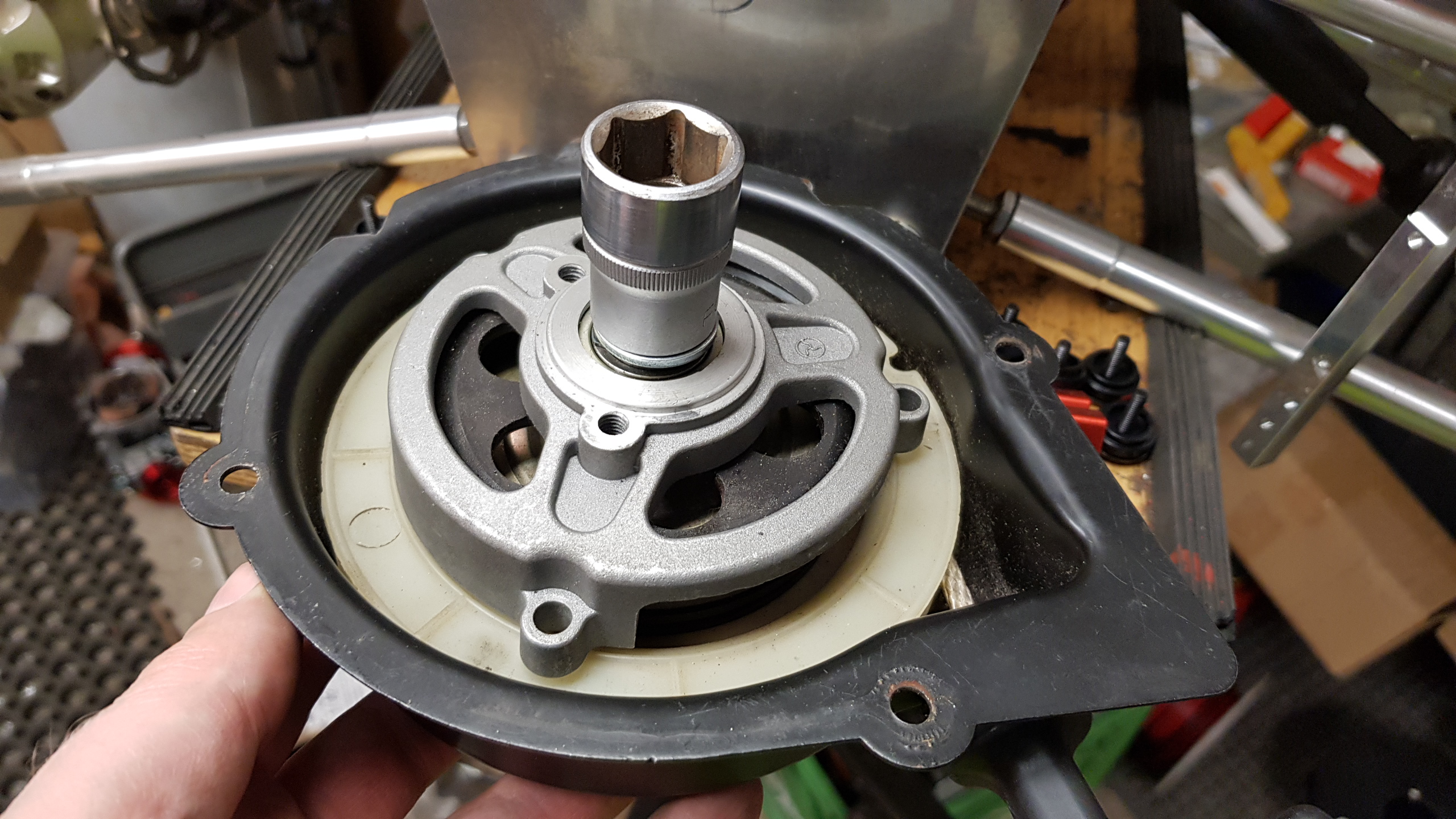 När motorn startat kommer 19mm hylsan att rotera fritt på axeln.