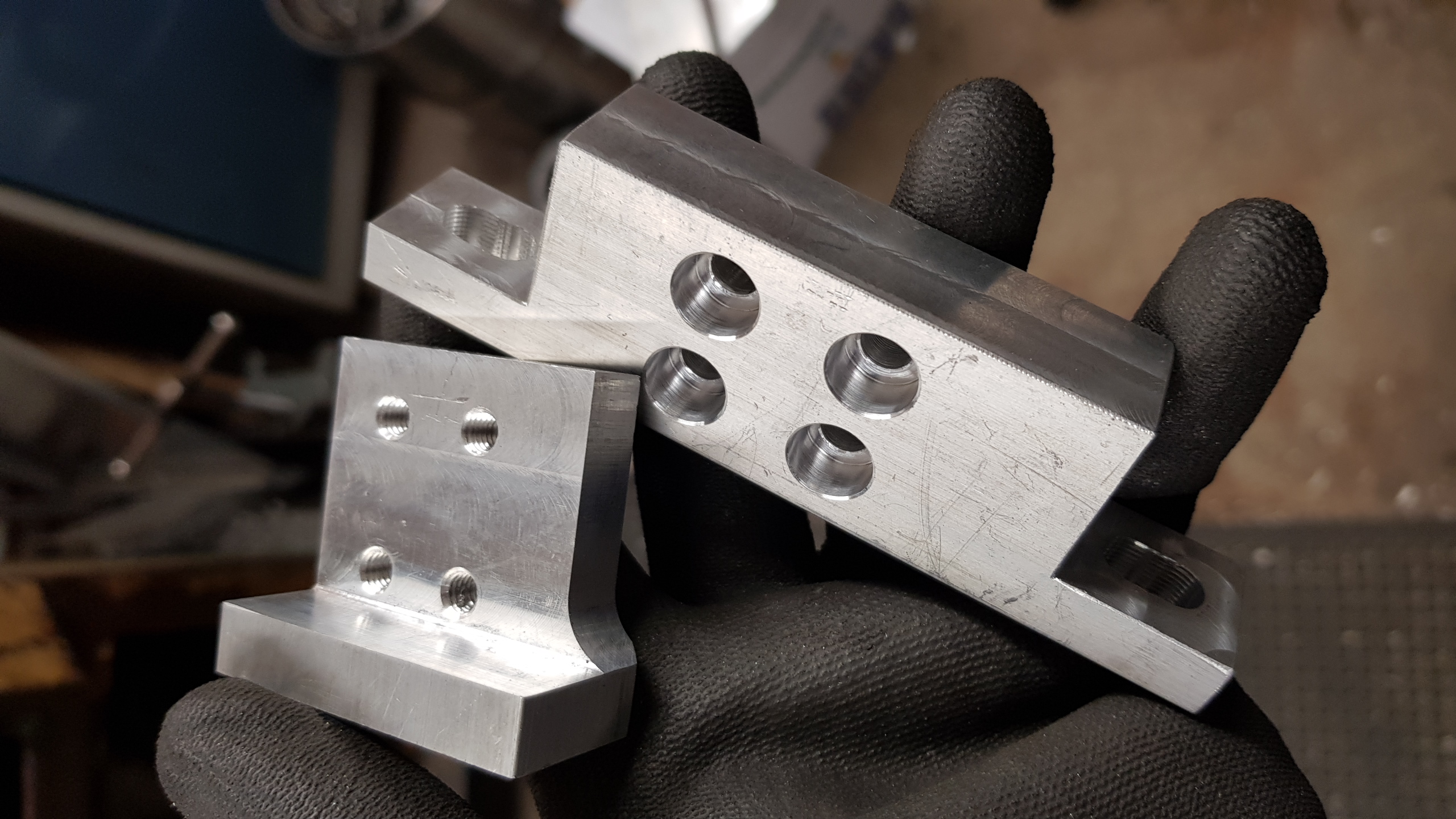 Hittade ett ämne stort nog för att tillverka stödfästet till fördelningslådan i ett stycke, och la ungefär 15h på den, ända fram tills jag fräste av en sida som skulle varit kvar.