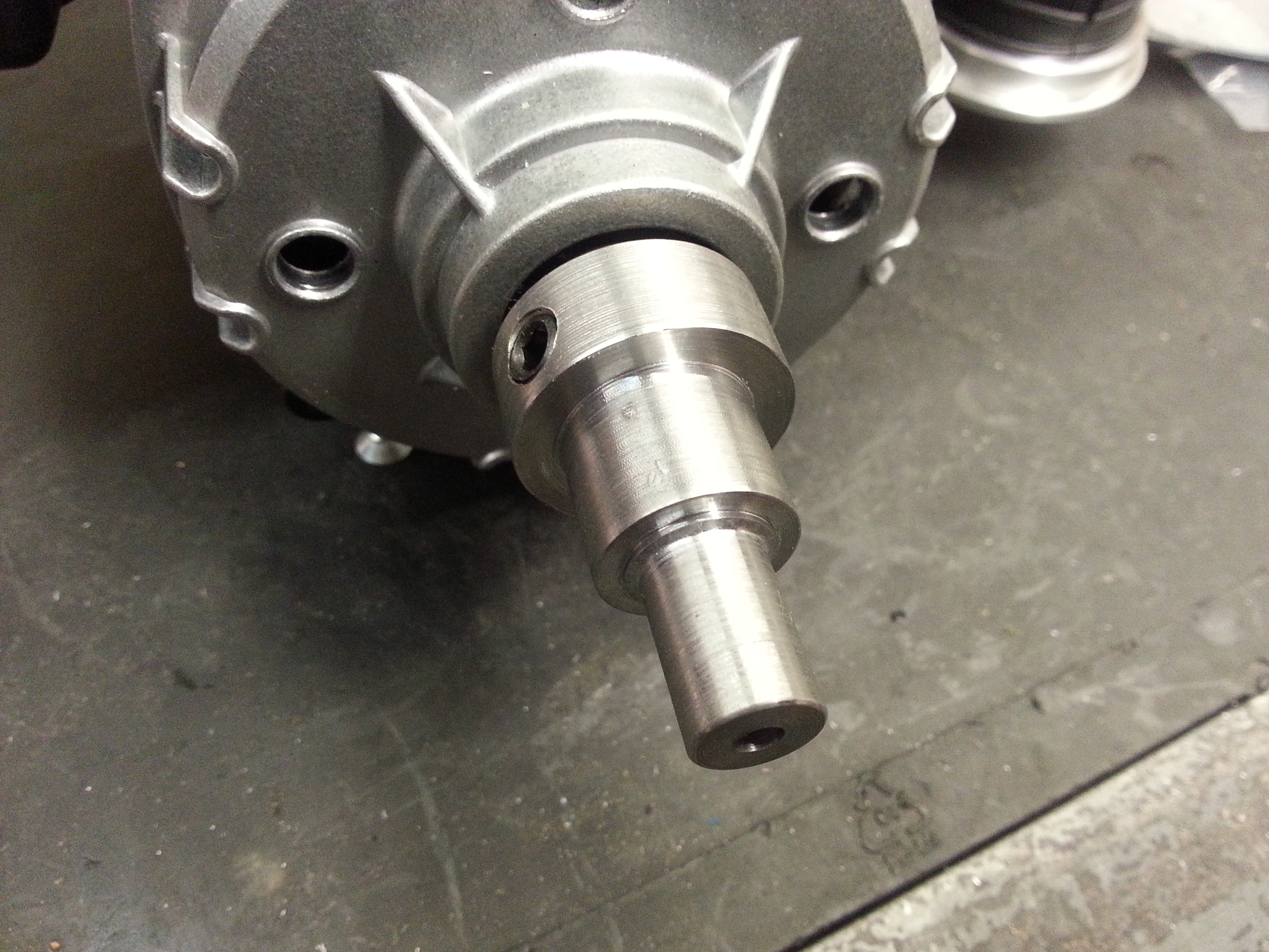 Har svarvat en ny innerhylsa till remskivan på bänken och fixat en klocka med M8 gänga istället.