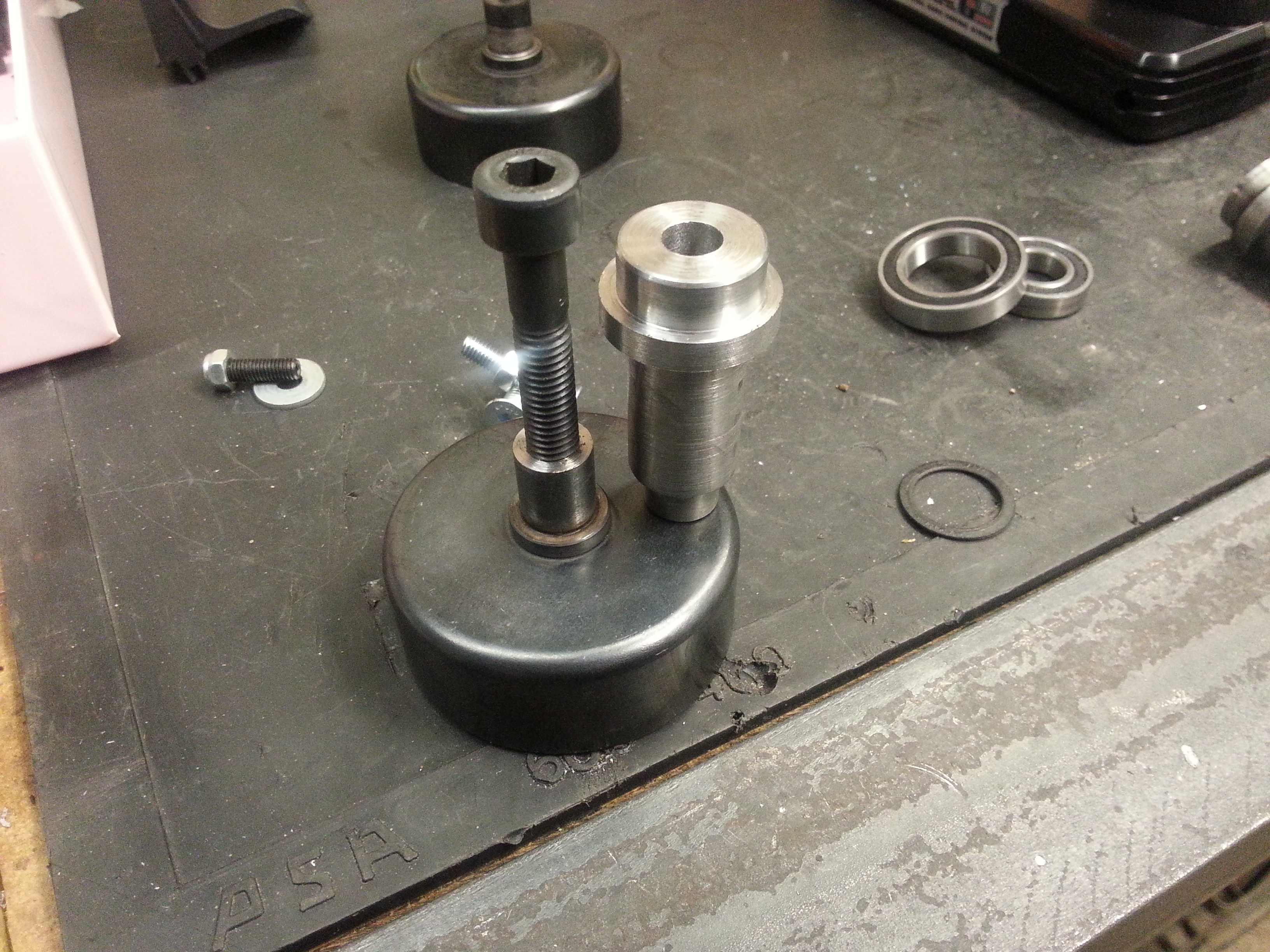 Nu kan jag dra ihop adaptern med bänken med en riktig 12.9 bult med M8 storlek.