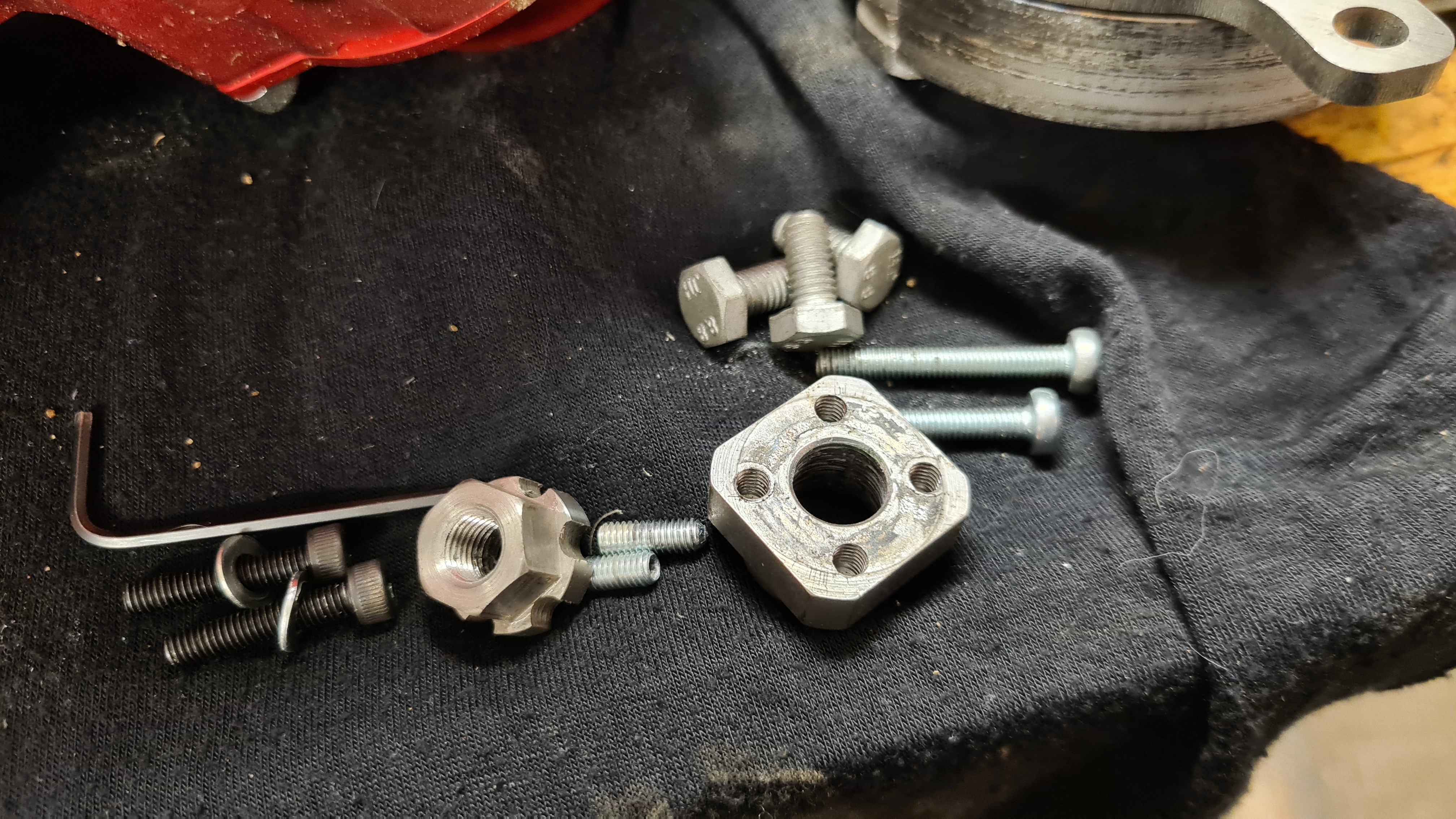 Muttern som håller allt på plats, låses med 2st M4 stoppskruvar.