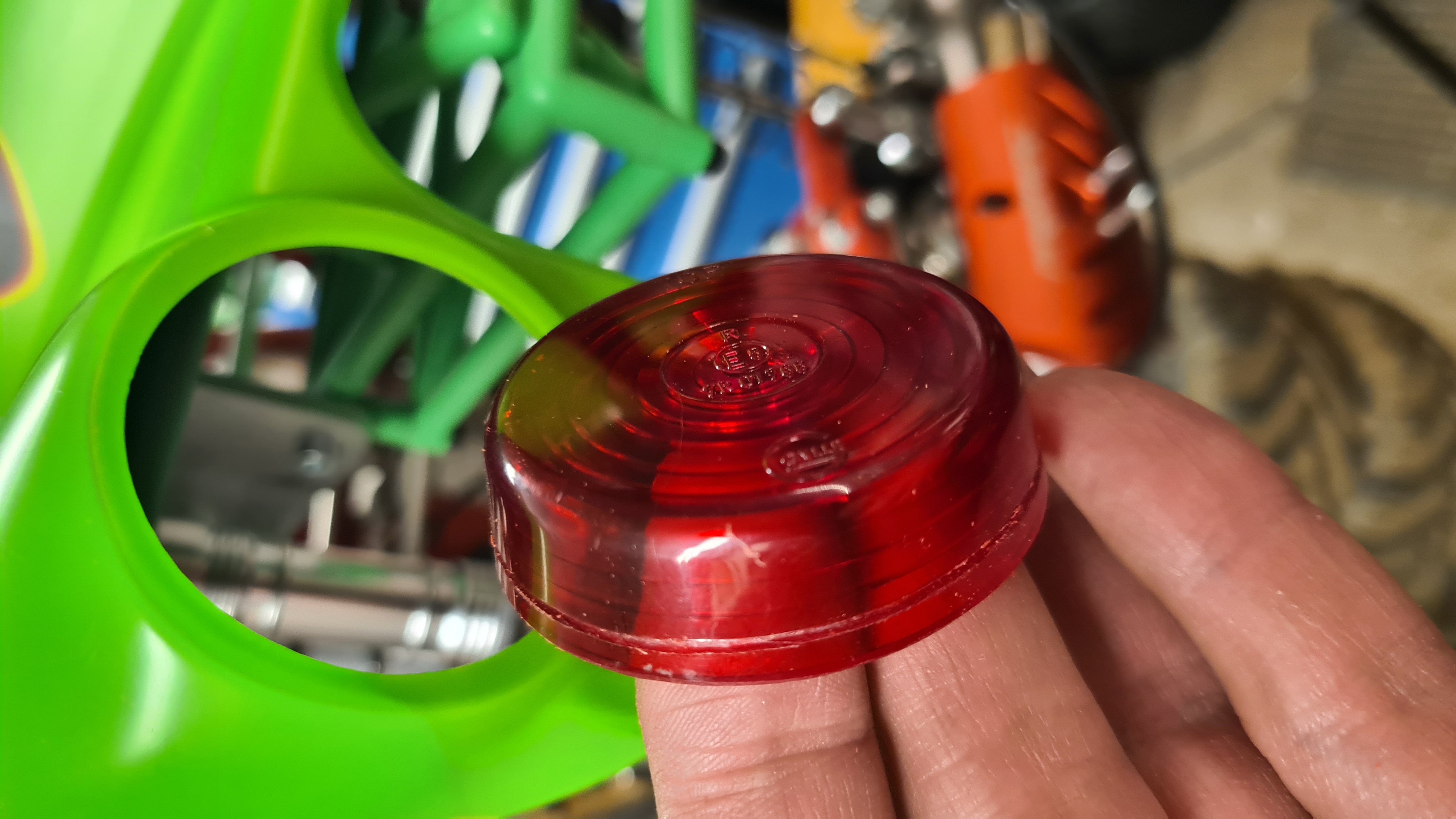 Tänkte mest att det blev ett senare problem att lösa, och att jag i värsta fall skulle svarva till ett par röda reflexer bara för att ha något alls i de tomma hålen.