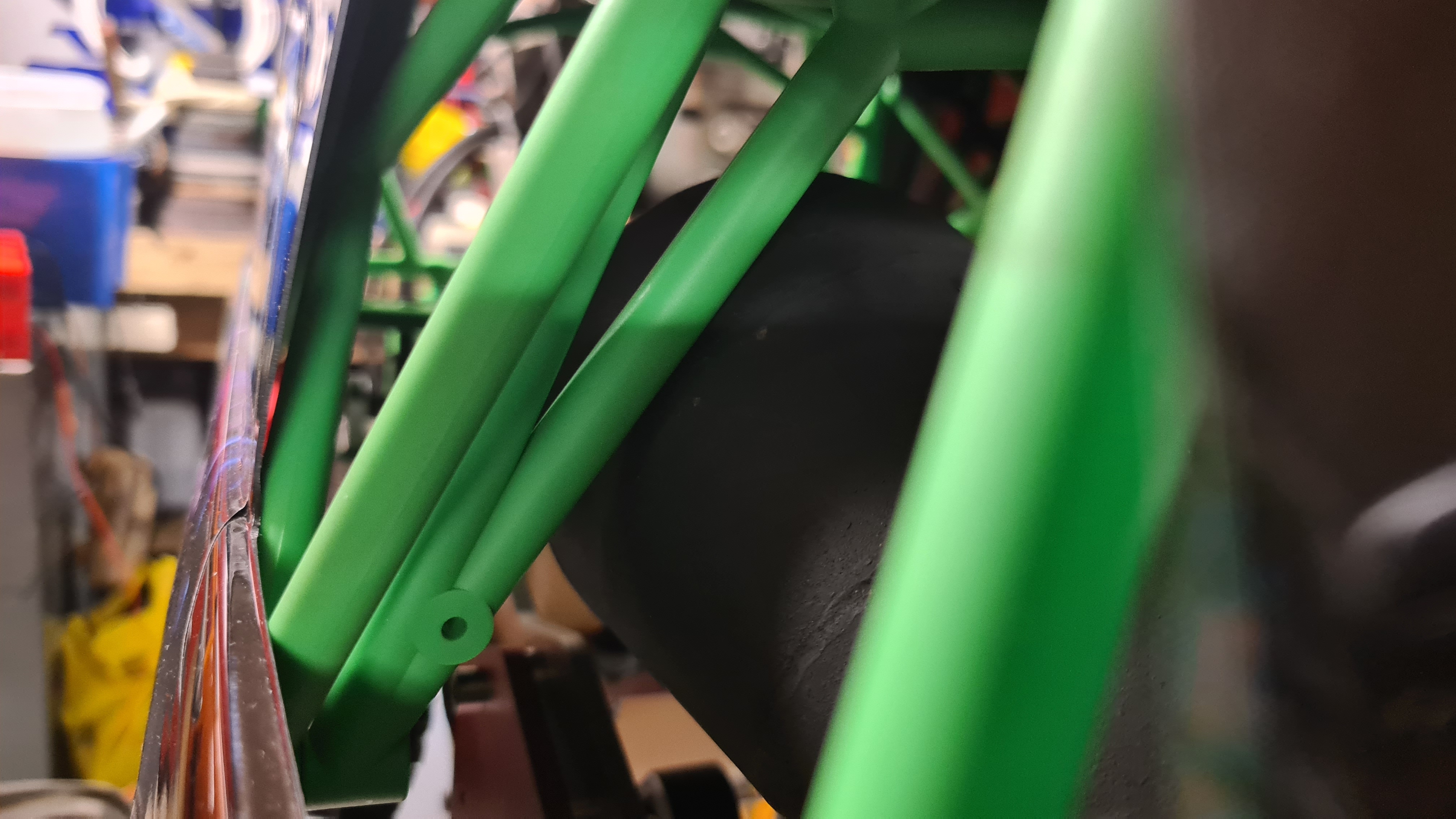 Fick svarva av tvärstagen 10,6mm, och tillverka lika långa distanser för att flytta fästet lite bara.