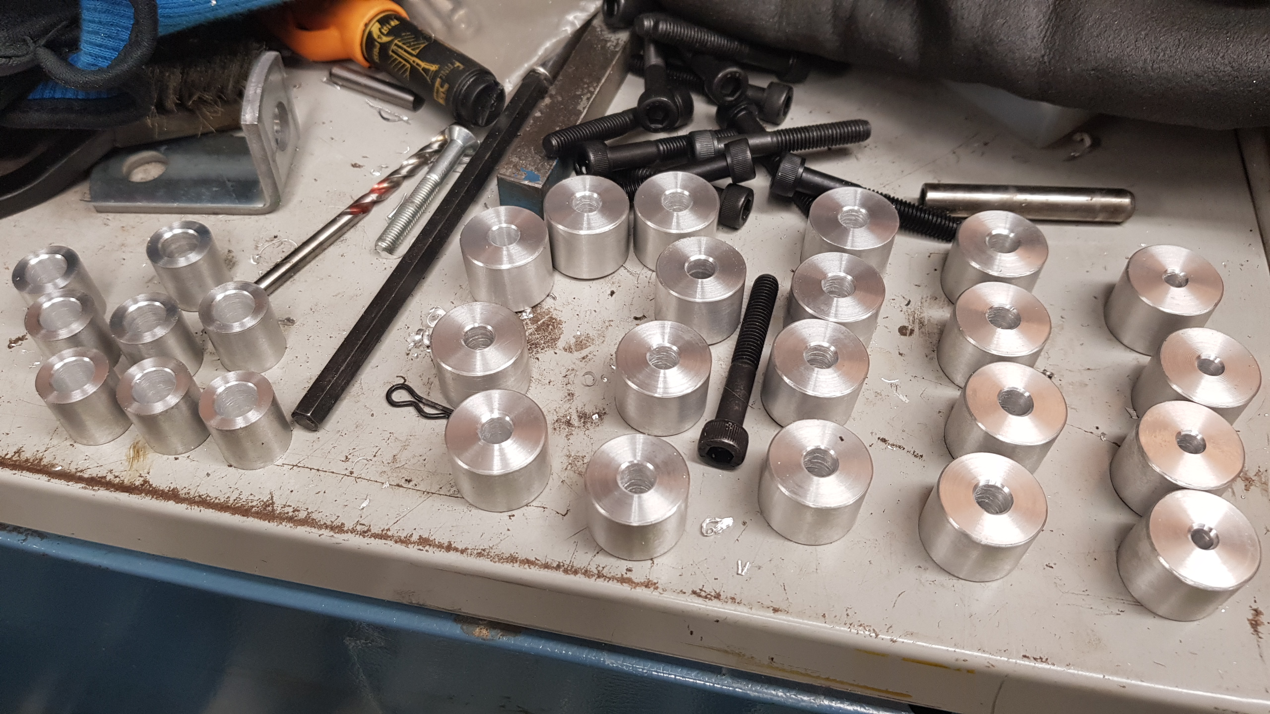 Så det blev en stund vid svarven igen och tillverka alla distanser som behövs för att bredda chassit...
