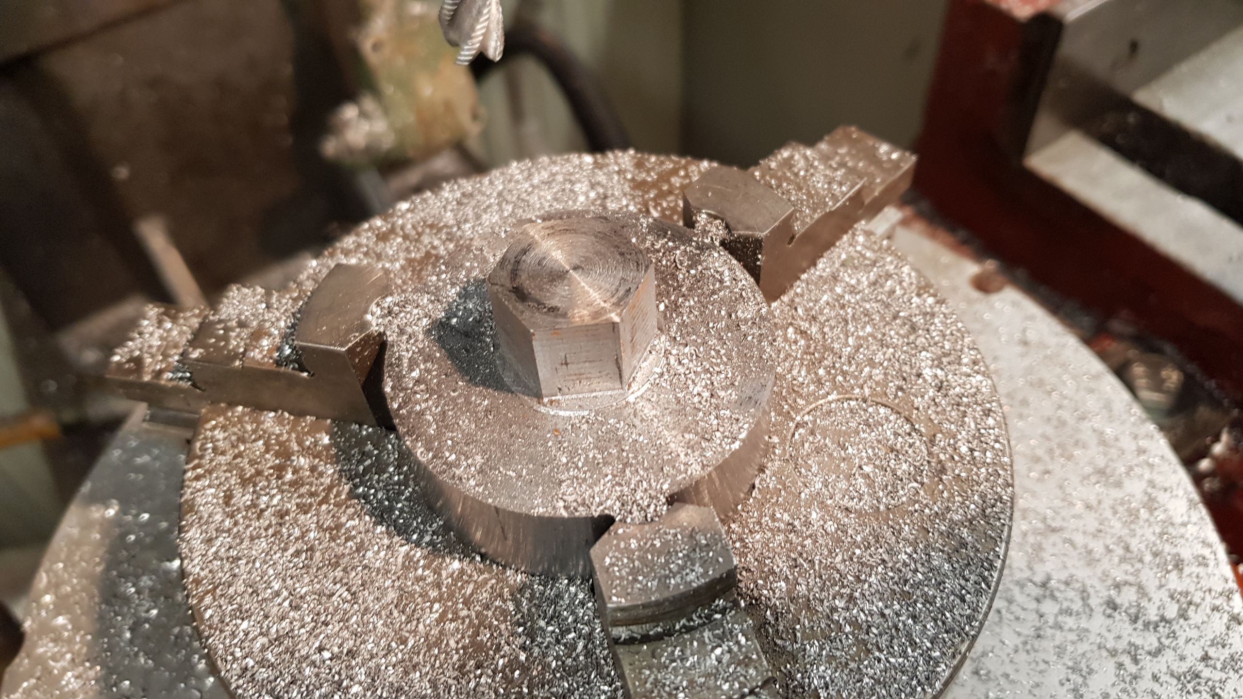 En 19mm hylsa är ungefär 19.2mm invändigt och det gjorde jag även sexkanten för att få så lite glapp som möjligt.