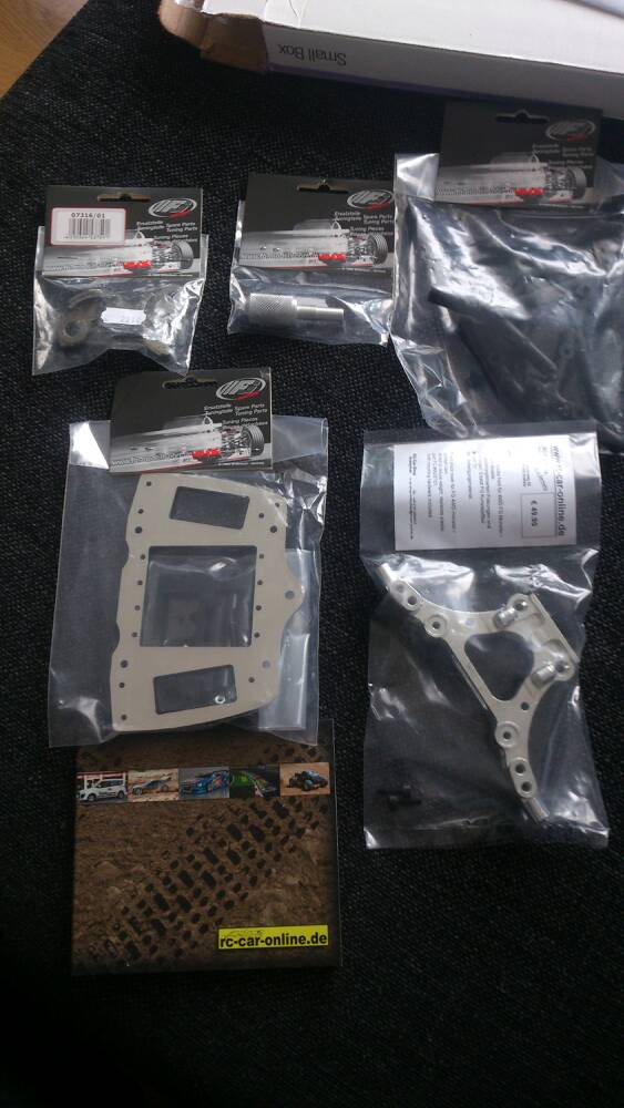 Radioplatta i alu, koppling, främre dämpartorn i alu och ett vingfäste beställt!