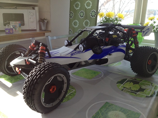 Min son Gustaw hade födelsedag igår 27/3 och hans önskan var en radistyrd bil som brummar då vi bara har massa el bilar nu så jag började kolla runt efter 1/8 nitro bilar mm mm och tillslut bestämde jag mig för en Kina baja 5B då den kostar mindre en dom flesta billigare nitro bilar jag hittat.. O JA jag vet vad dom flesta tycker om dessa bilar o jag är heller ingen nybörjare på detta så jag ser endast fram emot att se hur detta kommer att fungera.. Jag gillar ju options så det löser sig nog till det bättre då det börjar gå sönder. Vi öppnade kartongen igår och jag blev mycket nöjd av hur den ser ut.. Detta är den sk ss varianten med 26cc och en del alu. I påsk helgen blir det start och lite inkörning. Det som planeras bytas ut i första stadiet är pipan då ss pipan låter skit.!!