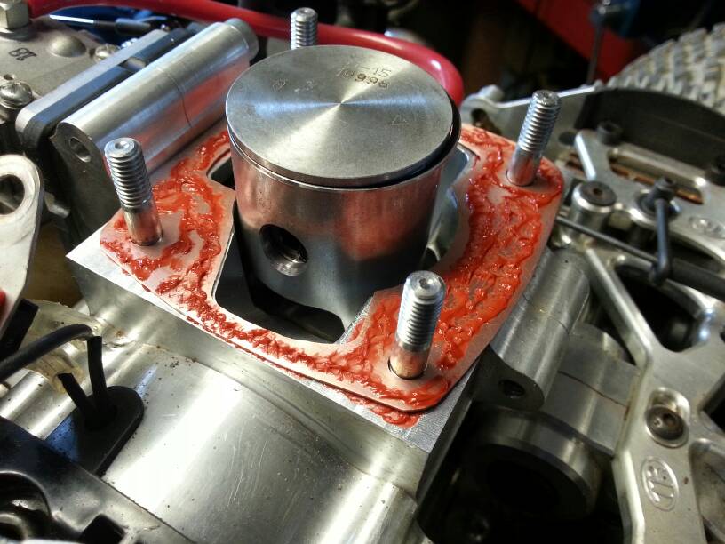 Kan ju dra upp lite bilder på det absolut första jag gjorde när jag fick hem den också. Cylinderns fotpackning läckte och när jag efter mycket om och men fick loss cylindern visade det sig att MMR stackat två 0,25mm aluminiumpackningar på varandra. Ville testa att tillverka en egen av 0,50mm kopparplåt.