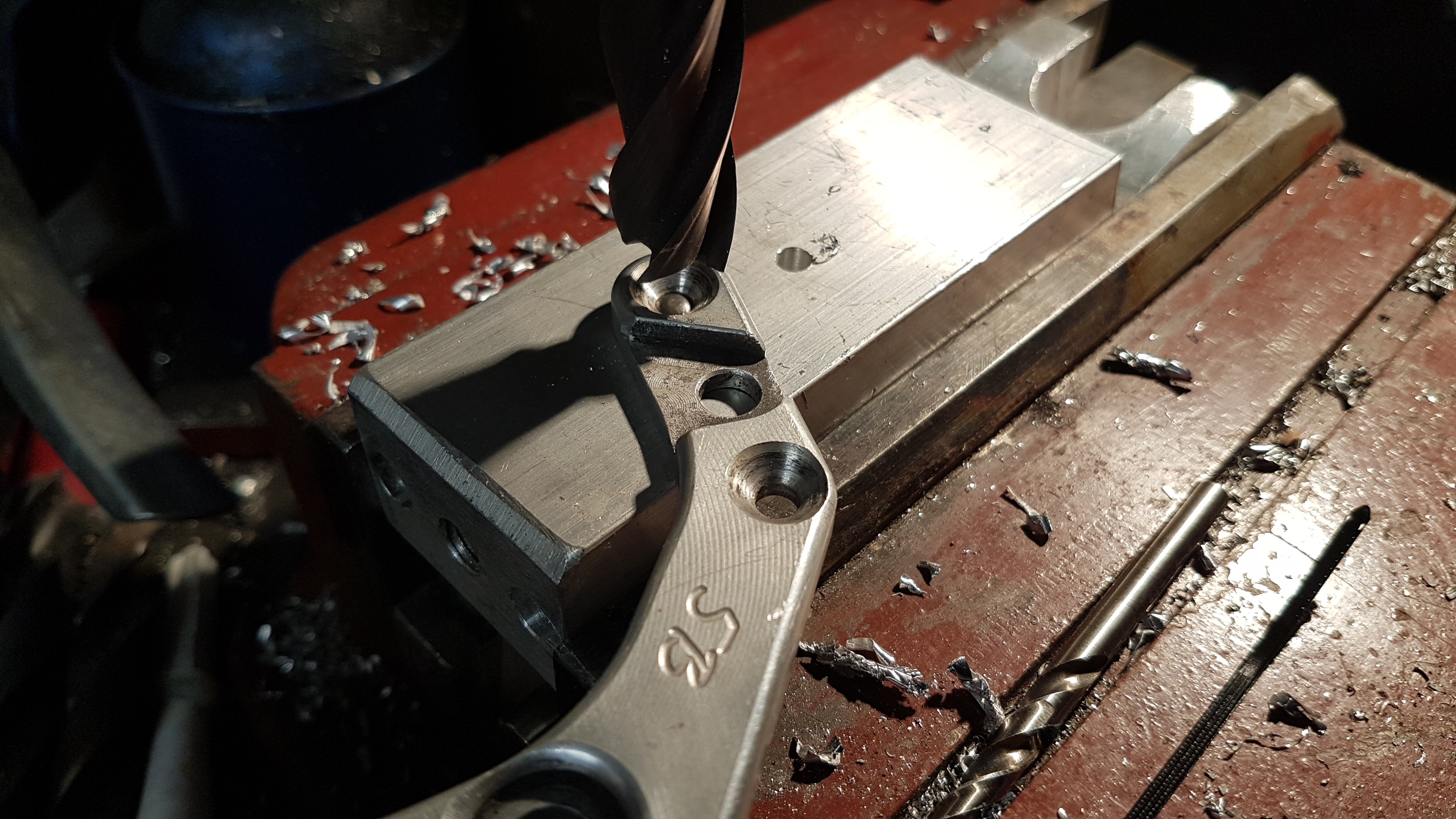 Till 5B hade jag ett gäng, så jag tillverkade en simpel borrjigg, där jag helt enkelt gjorde om 5B plattan till en för 5T med en ändfräs.