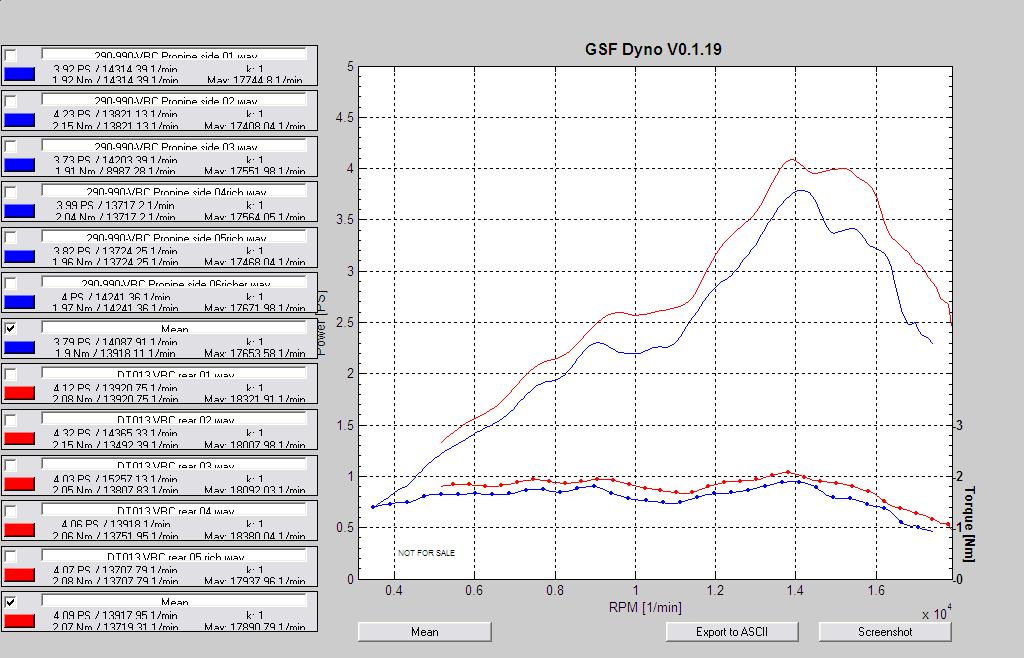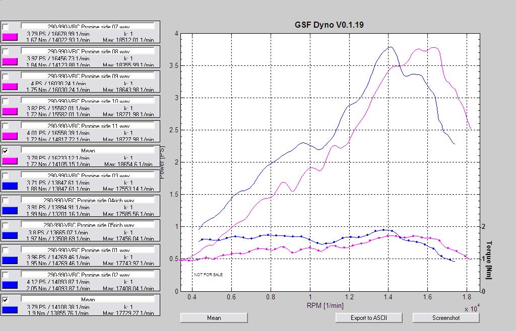 Ville ha en bänkning innan och motorn ska bänkas om efter portningen, men här är jämförelsen med min egen trimmade 290 som jag har i min 5B nu.