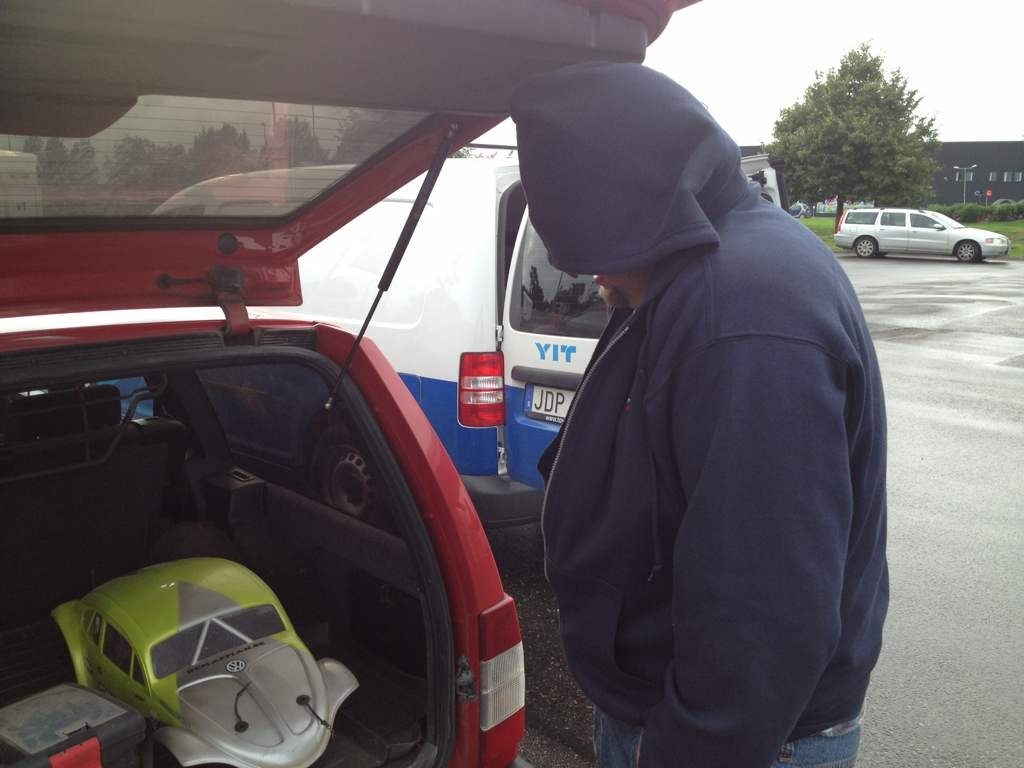Eftersom jag är blind och inte ser bilen bakom :hmm: så gissar jag på den orakade hakan att muppen har tömt plånboken igen :rock: