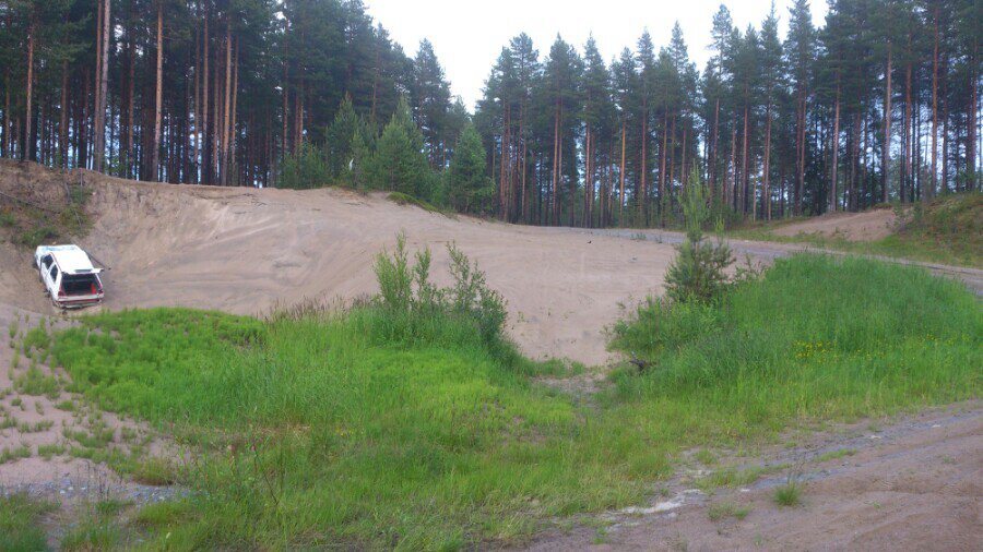 Fick.även två bilder tagna på sandgropen Vi var i. Tydligen inte bara radiostyrt som körs där, även en Golf hade försökt basha lite med mindre lyckat resultat