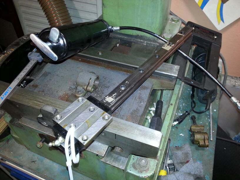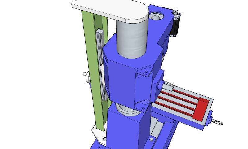 Tanken är att man monterar skenan på pelaren, och linjärlagret i fräsens huvud.
