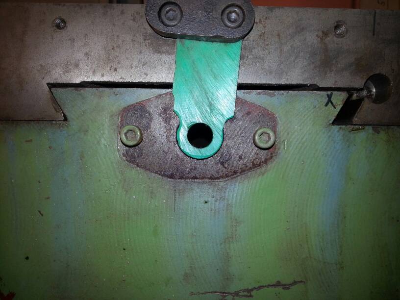 Tillverkade en platta med ett 16mm hål och en yttre radie på lite mindre än hålet i chassiet på fräsen. Denna platta klämdes fast i tvärsliden injusterad så gott det gick.