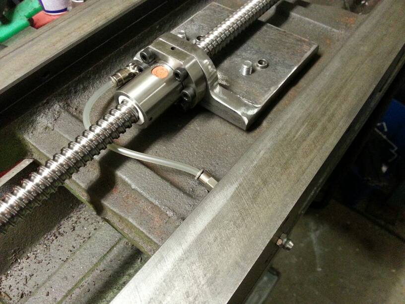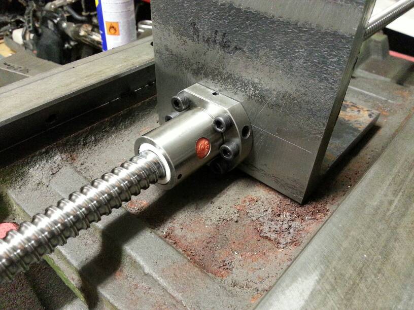 Eftersom skruven och muttern måste monteras innan fräsbordet läggs på plats bestämde jag mig för att anpassa lagerhållarna till skruven istället för att anpassa fästet till kulskruven efter lagerhållarna.....