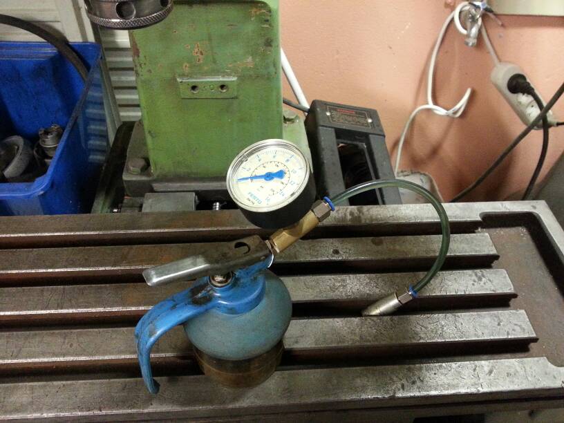 Byggde om en gammal oljekanna för att kunna pumpa i gejderoljan sen, testade med lite vanlig växellådsolja som var lagom seg.