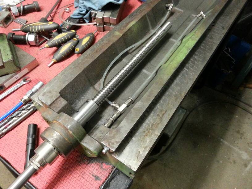 Satte i en överbliven bit av kulskruven för att se till att smörjslangarna inte tog i....