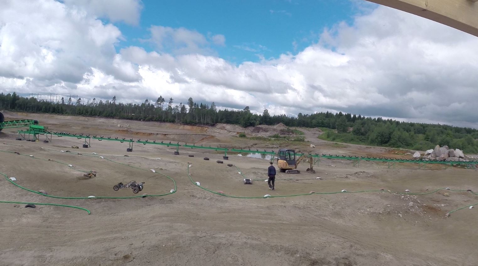 Elliot hjälper till att plana ut velodromen.