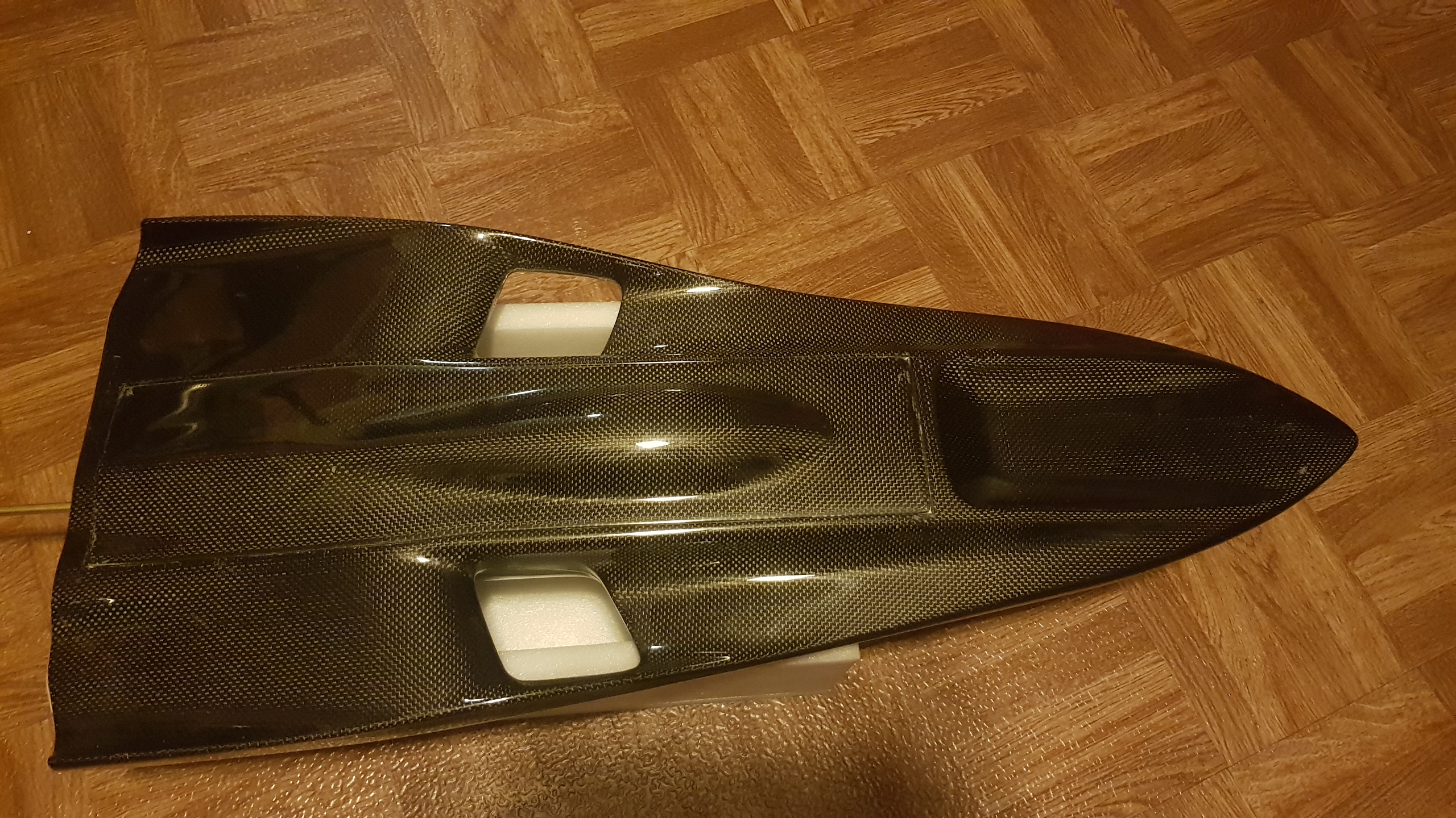 Men nu har jag tagit tag lite i den igen. Vet inte om den riktigt räknas som LS med sina 75cm, 85 med roder osv eller om någon ens vill läsa om den men det märker vi. Skrovet då, kolfiber, lite speciell design, vilken var anledningen till att jag skaffade den. Kollade runt och trodde att jag hittade en variant utan vändkammare. Det gjorde jag inte, så ettredan litet skrov blev genast mycket mindre.