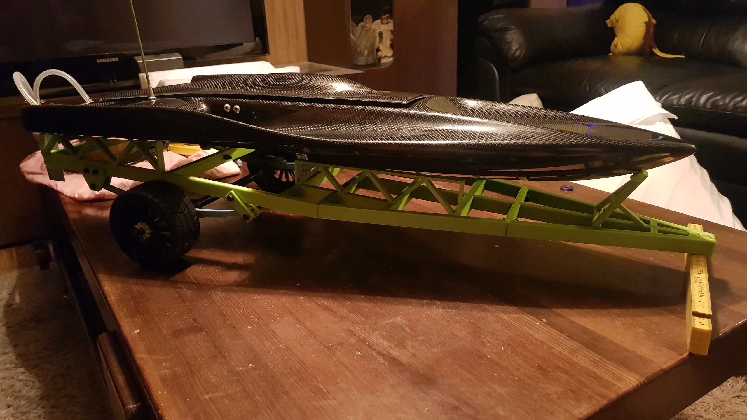 Printade flr en tid sedan en trailer till denna. En skala 1/10 som jag försökte stretcha ut. Tyvärr låg inte båten så bra på den.