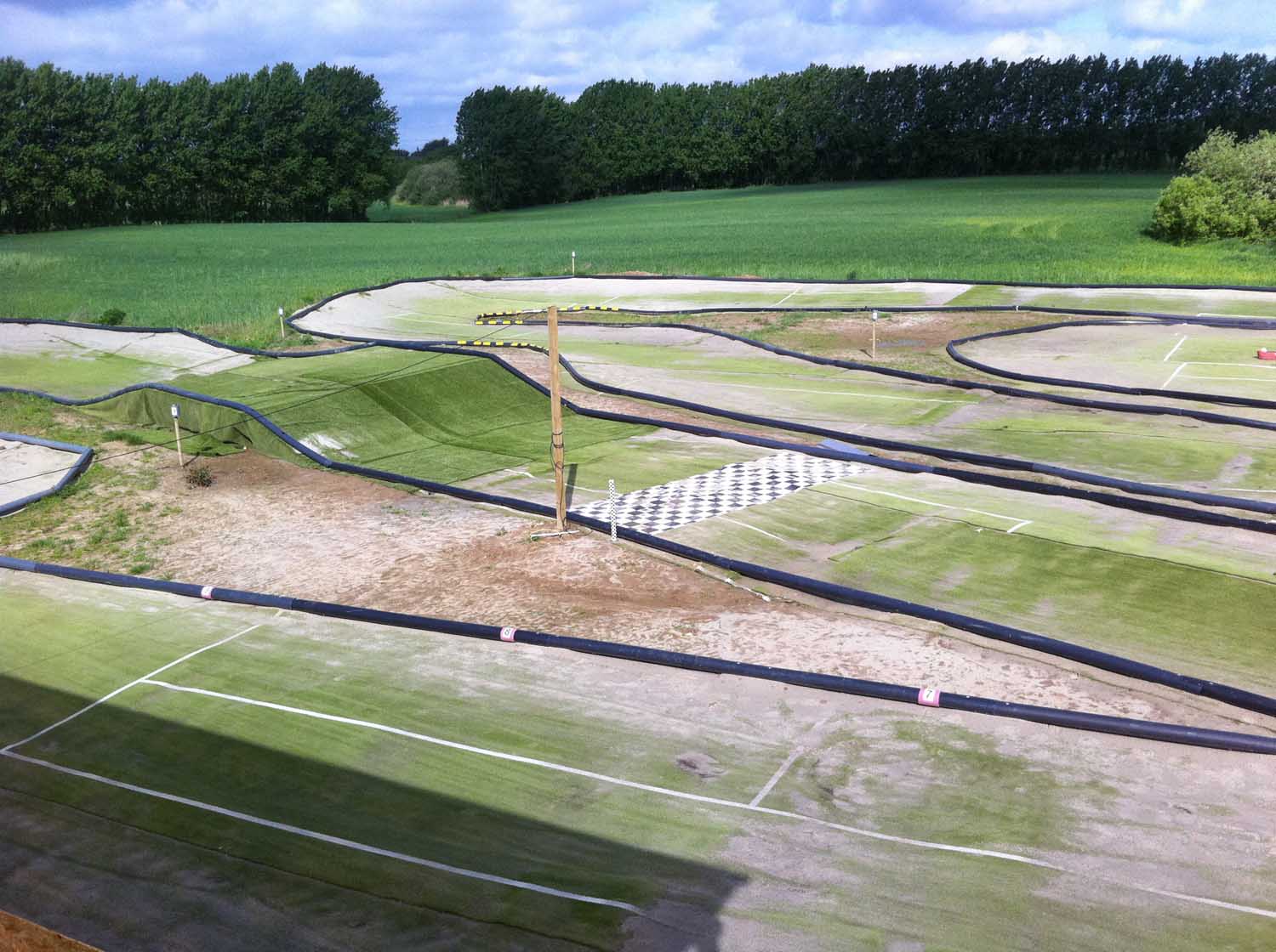 Är remsor med konstgräs i botten. Ser man på linjerna. Oslagbar hållbarhet. Skulle vilja se den banan som är i bra skick efter ett endurance race på 12 timmar med 10 lag :hmm: