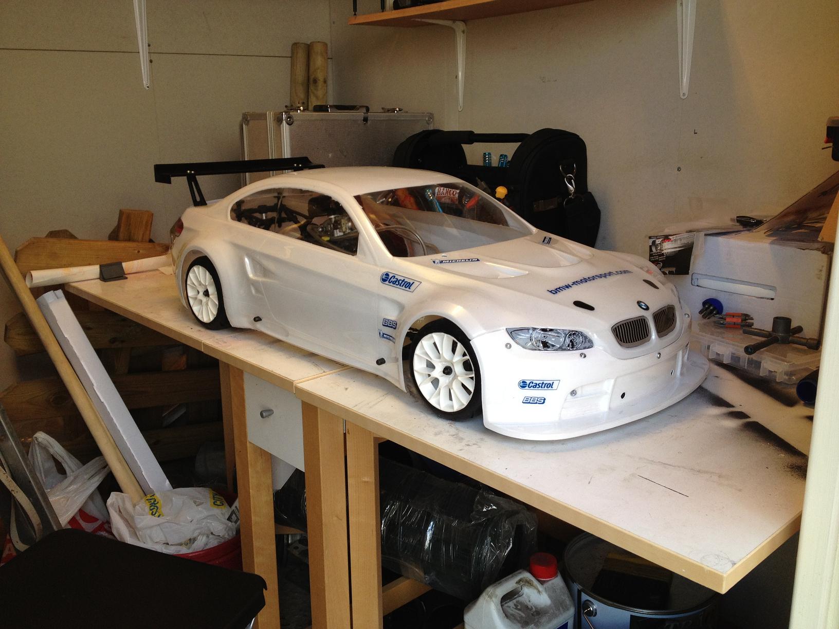 Det som återstår idag är:skära ut rutor och snygga till läppen som jag fulkapade igår samt montering och inställning av servo, råkade köpa en ny radio också så där är väl en stunds pillande med den..Nästa helg drar jag och Fredrik till Karlshamn för årets första körning, då är det motorn som ska köras in och fixa lite grundsetup på bilen..