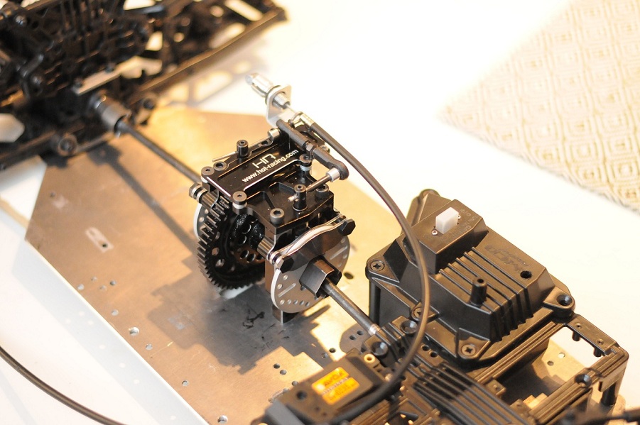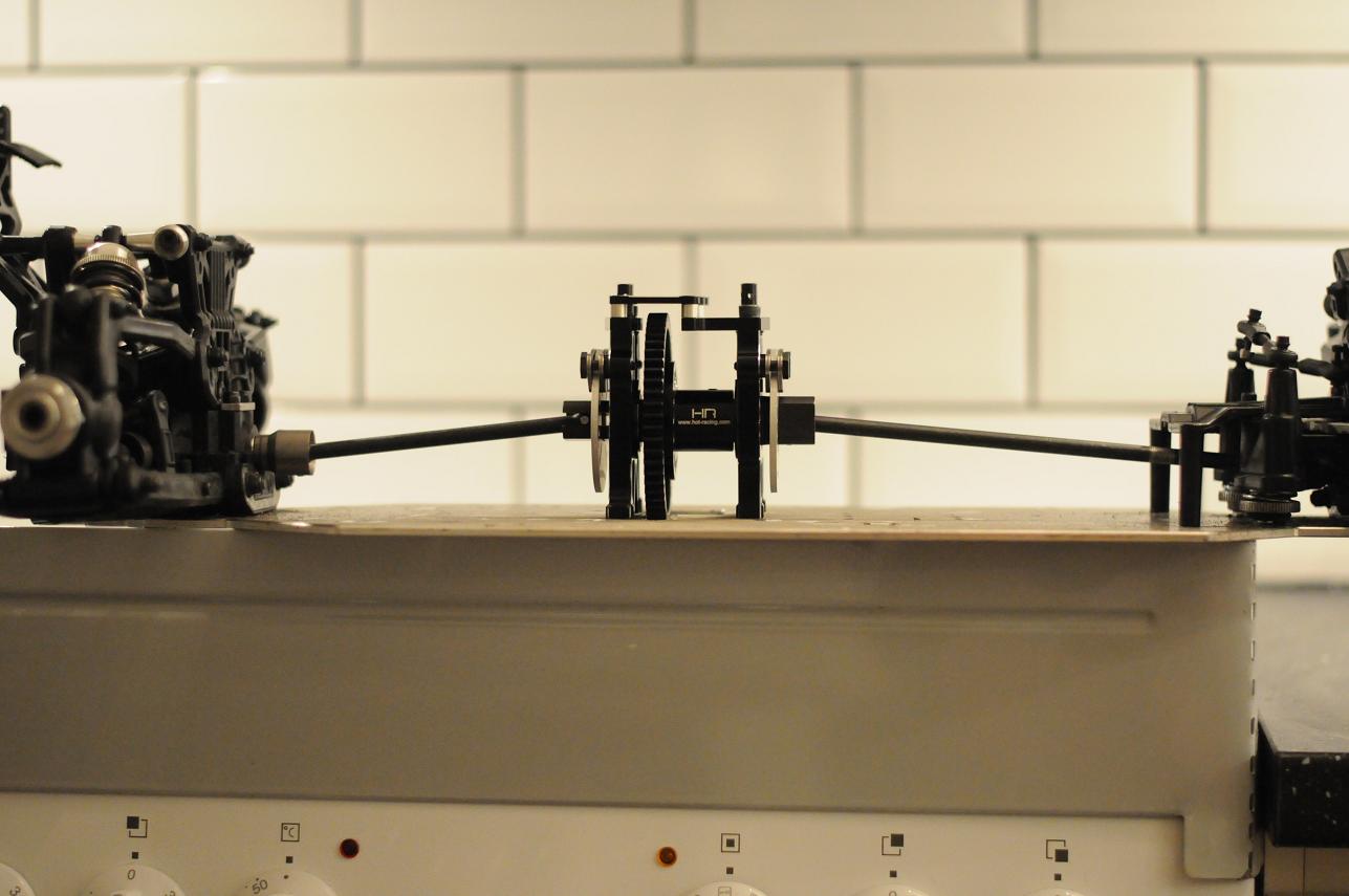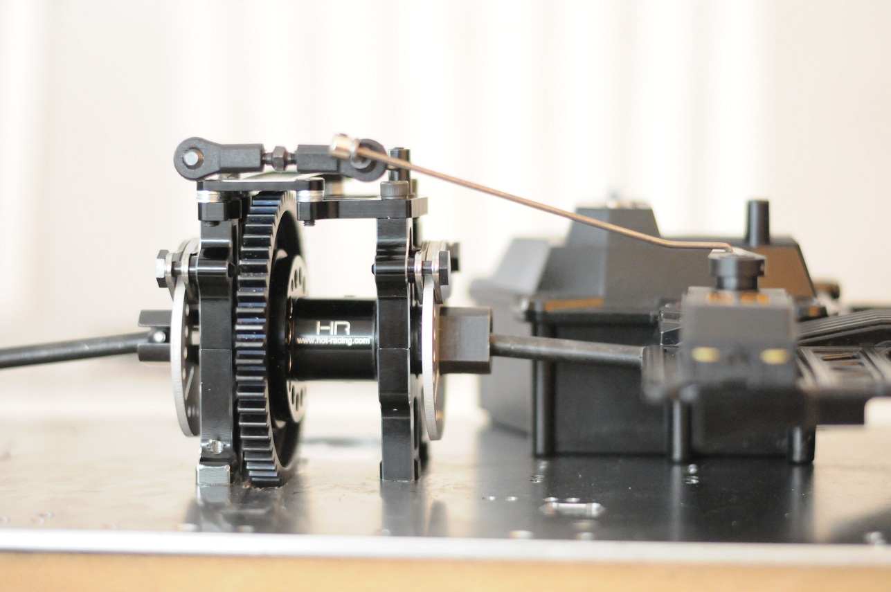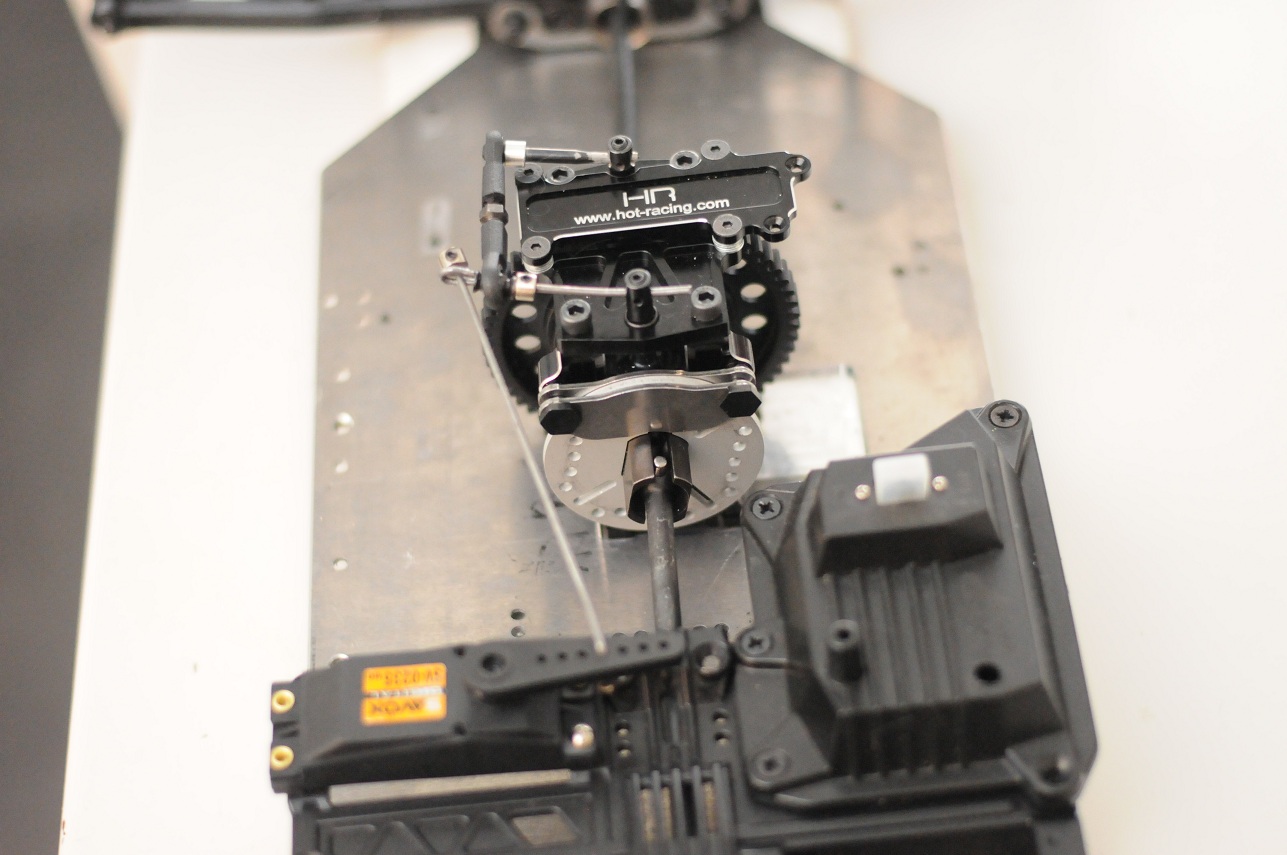 Det är 25mm nivåskillnad mellan servoarm och bromsinfästningen på centerdiffen, ska testa utan distans först, blir det svikt så fixar jag distans så att servot kommer i samma nivå som centerdiffen.