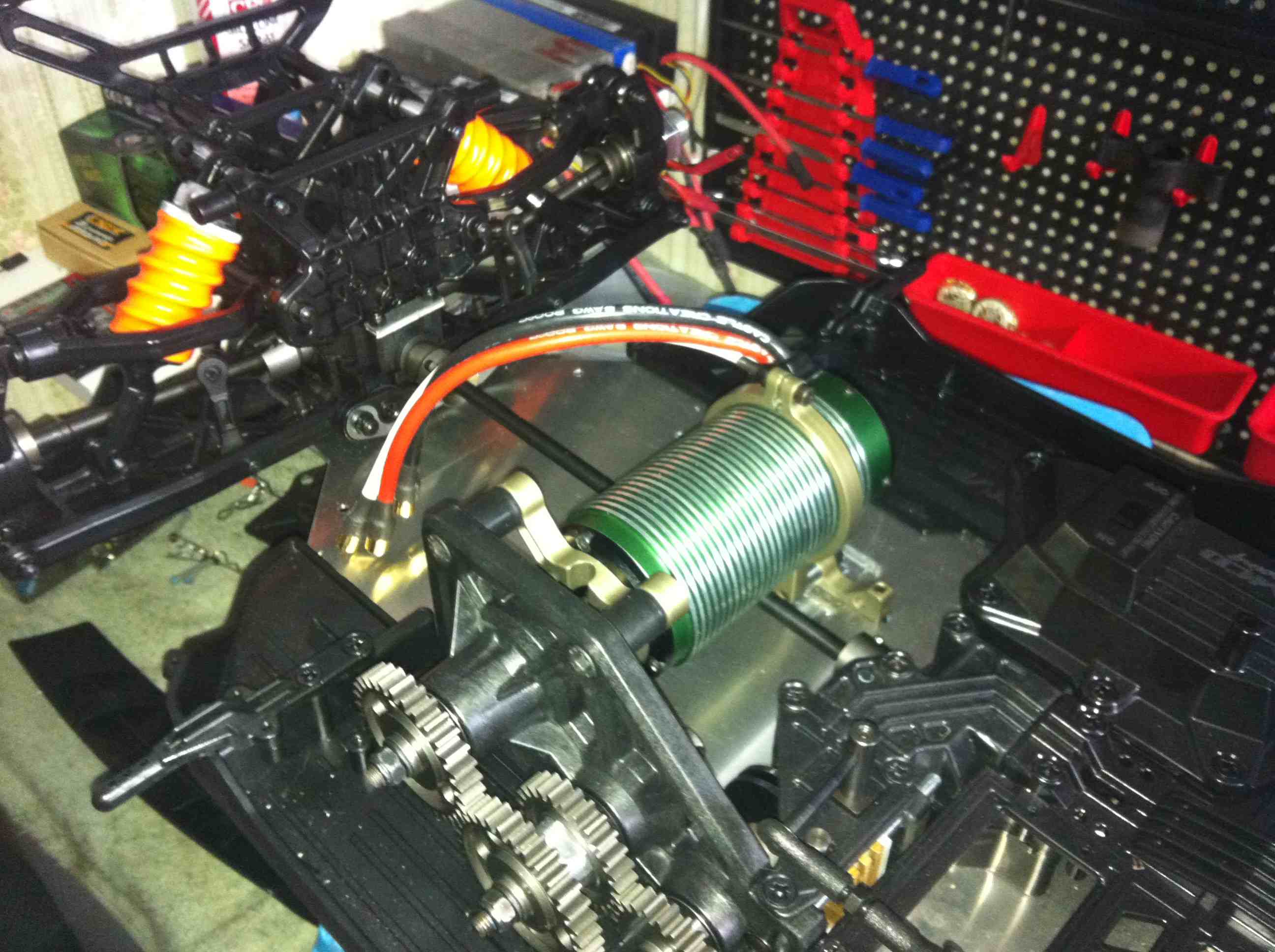 Setupen är ganska standard. Jag har standarddiffar så oljan man häller i kommer med tiden att läcka ut - jag har ändå hällt i 100k fram och 50k bak. Har även bytt till mjukare fjädrar och 45WT olja i dämparna samt justerat toe och camber. Droop och kräng får jag fila lite på när jag provkört. Det mesta av inställningarna har jag läst om på mcdrc.com men det är inte mycket info som finns där ute så är det någon som rattar en X4'a på bana tar jag gärna emot tips och idéer :thumbsup: