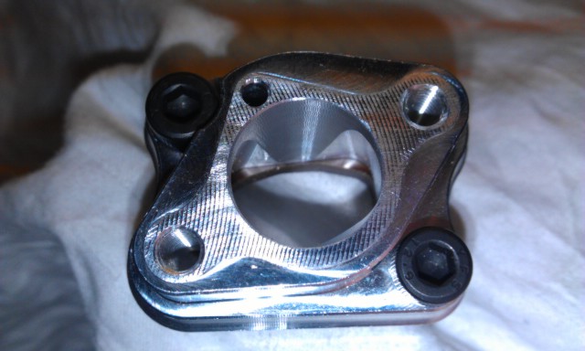 Min insulator är likadan, backelitdistansen är original men papperspackningarna är modifierade lika insuget på motorn..