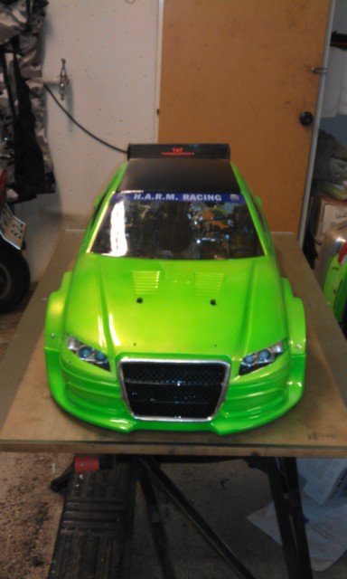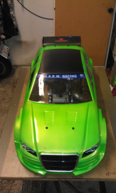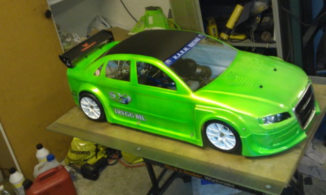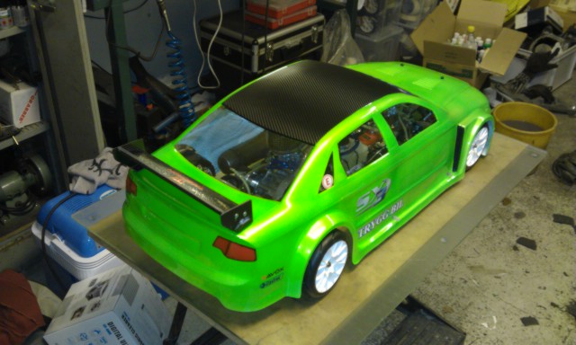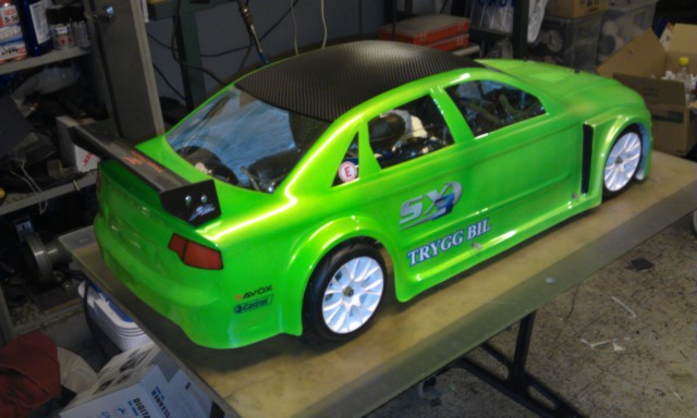 Stämmer att det är samma gröna färg som jag har använt som "min" färg dom senaste 5-6 åren. I år blev det bara grönt för jag ville slippa hålla på och skära maskering i den här kaross pga att den är rätt så tunn. Lunkan var nere hos mig igår och levererade lite fusk kolfiber.wrep wrote:Snyggt!är det guld i den göna som du hade förut? Taket ser ut som samma film som på Lunkans?