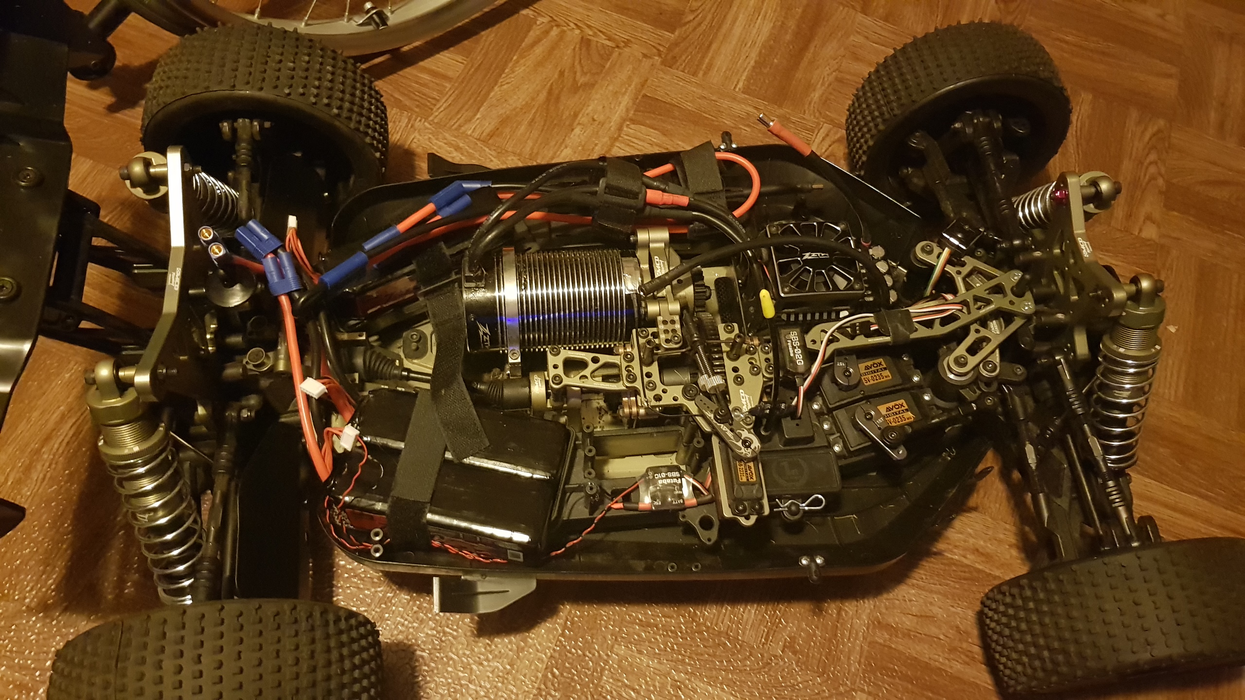 Jag har funderat på om det går att få ner esc bakom motorn liggandes på sidan med fläkten bakåt för att få plats för batterier där esc och sercohållarna för broms är nu. Det skulle kanske gå att få ner ett batteri bakom motorn med men det blir ganska tight och lite högre upp från chassit.tesla wrote: ↑16 Jul 2019, 20:23Visst är det stor skillnad i hur mkt smuts det kommer in med buggymössa kontra mcds stora karosser som rally och shortcourse som ju har helt öppna hjulhus där allt hamnar rakt ner i bilen.beta wrote:Visst är det så. Men hoppas på att de ska vara lättare att få plats med då de är 6-7mm smalare/st än hardcase.