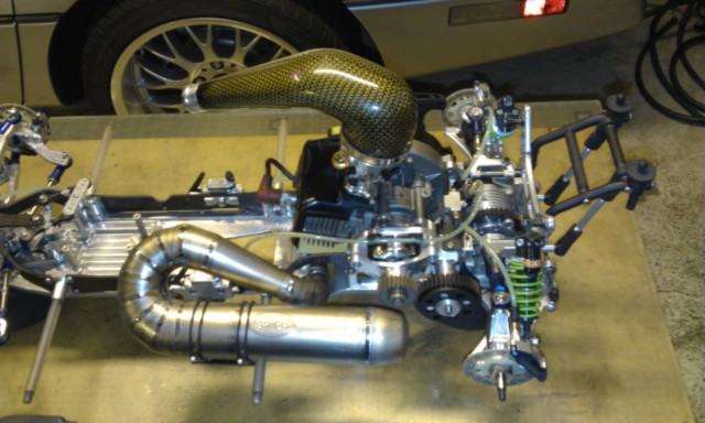 Det blev även lite gjort denna kväll. Satte tillbaka motorn efter att jag gjort rent resten av bilen. Monterade nya kopplingen med ny kopplingsklocka och ny pinjong. Köpte även ny "bromsvätska" idag,en viss skillnad (mecatech 1400:-/liter. Castrol 128:-/liter). Imorgon kommer nog däcken från Hobbygården och på Torsdag kommer nog delarna från Rapid racing. Helgen kan nog vara räddad.