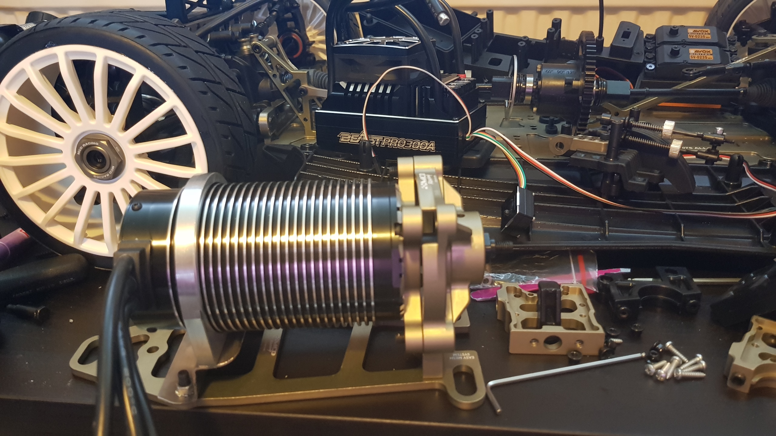 Fränt. Och bra val att köra med mcds kopplingshållare/Axelförlängare då det sparar motorn ngt enormt jämfört med konventionen piniong på motoraxeln.