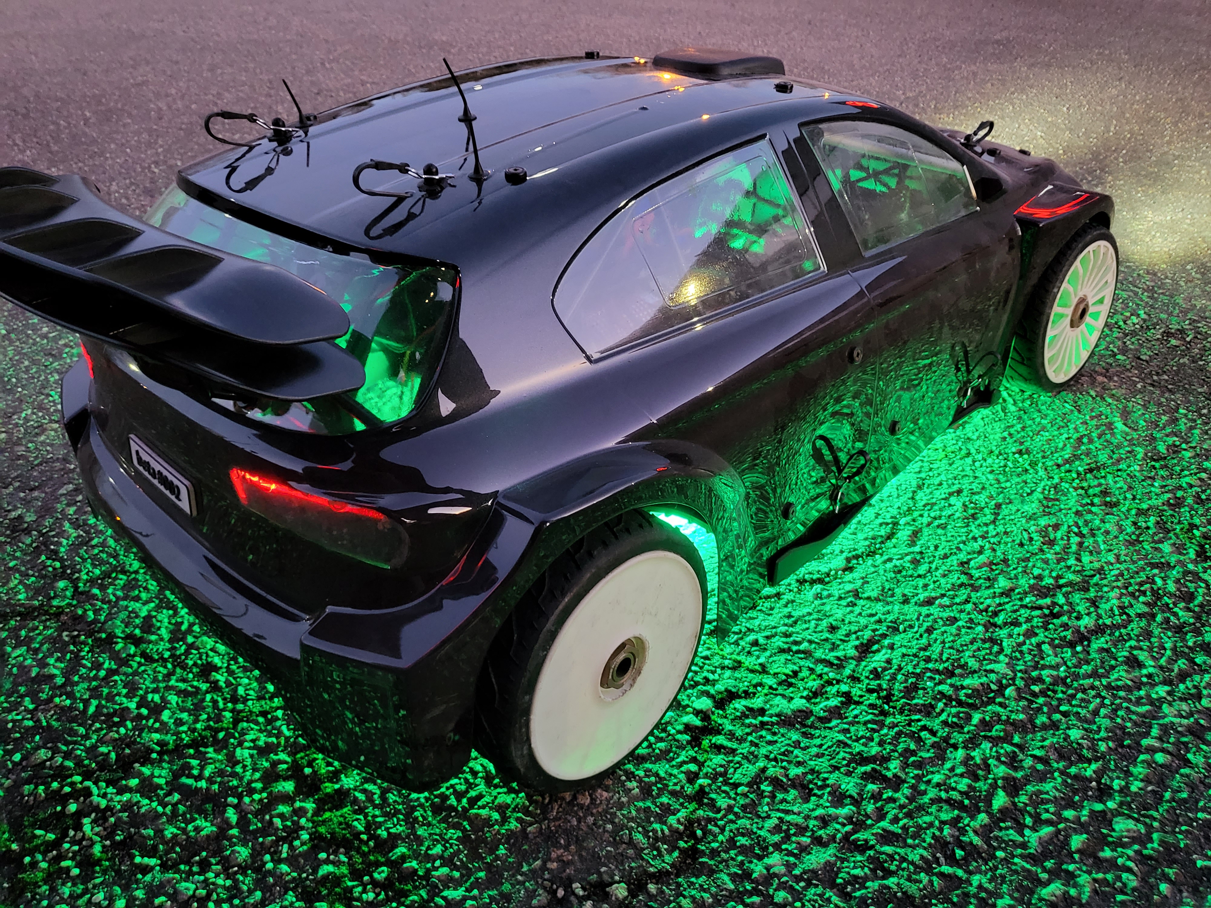 Köptes som en max pro, men sen bytade jag över allt alu godis från min rr5. Även xsnap hamnade i denna och savöx 0241 till styrning och 1210 (har jag för mig) till broms. Då denna blir renodlad xr5 och den andra blir renodlad xs5 så får denna även ärva en kaross med belysning och jag har även printat light pods i rallystil, som inte är helt klara (lödda led kvar). Det som håller denna tillbaka lite är esc som inte kommit än. Beställde castles xlx2 för 2 månader sedan men castle har svårt att leverera (mgm är för dyrt för att ha 2st i de 2 bilarna jag kör minst, ztw är jag på mitt andra och jag ville prova något nytt, som på pappret verkar nice med telemetri osv).