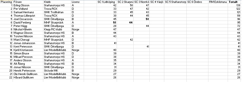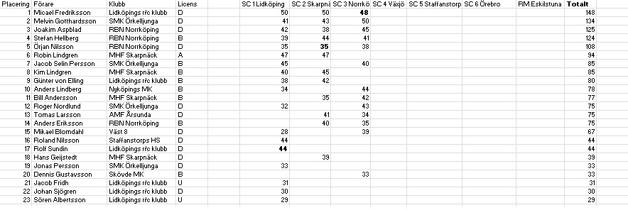 Råkade se att jag o Per har samma poäng från Lidköping, antar att det ska vara olika? Per var 13:e och jag 14:e.
