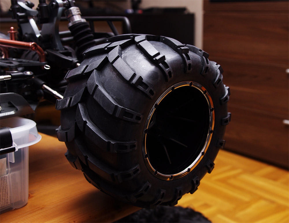 Grejjade på lite idag, jag rengjorde ett däck för att se resultatet, När däcken kommer från fabrik är dom lite smått grå och det ser ut som om nån kltat nått medel som torkat på däcken, jag använde Ultima tire and trim plast däck mkt bra medel.