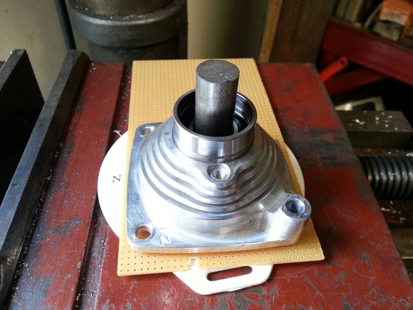 Hittade en axel som passade i lagren och skrotade ett gammalt lager att trycka med, som jag satte i chucken på pelarborrmaskinen.