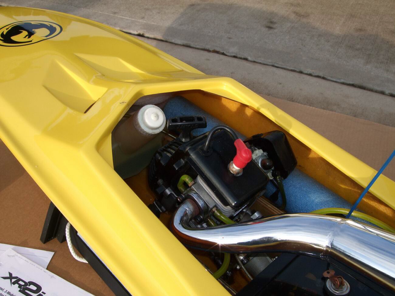 Futaba 2.4Ghz 2 kanal mottagare med killbee "gamla version" och dom är sitter i båten nu.
