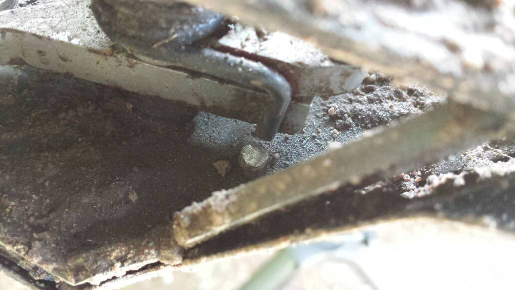 Det visade sig att skruven till chassiförstärkningen gick upp precis lagom långt för att ena fjäderbenet på servoräddaren skulle kunna klättra över men inte kunna lossa!