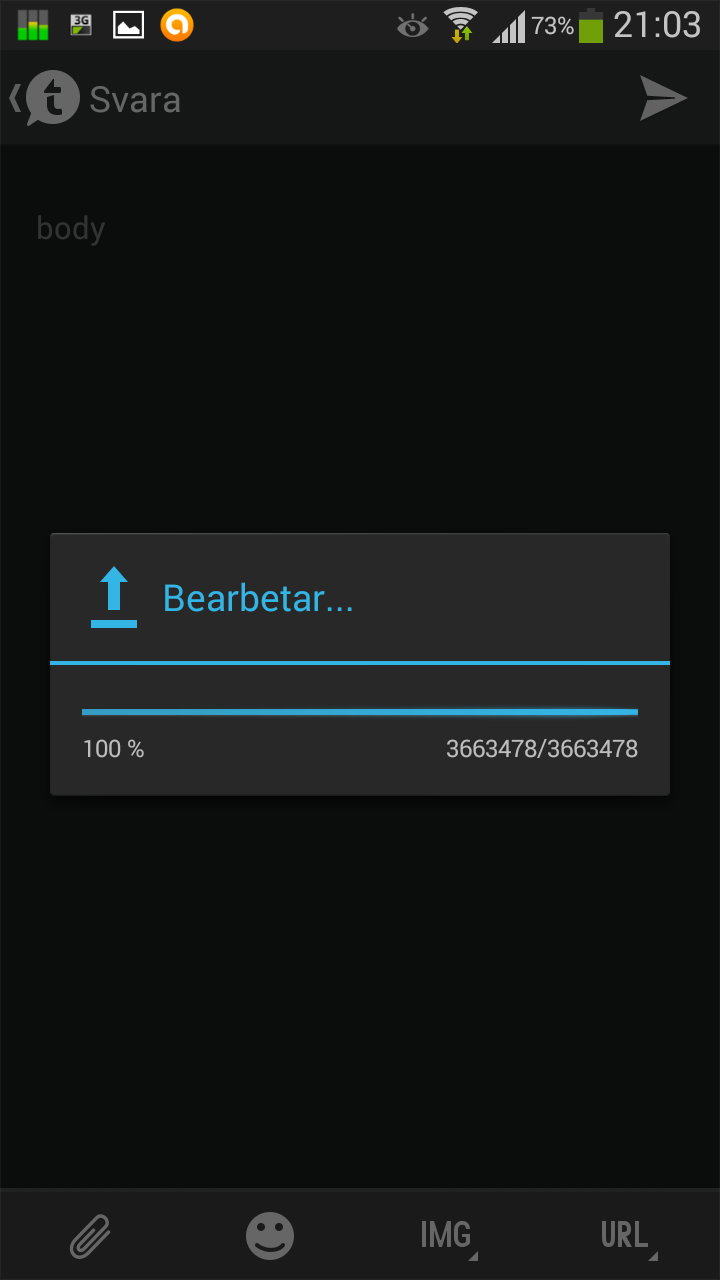 Såhär långt har jag oxå kommit men när den laddat klart får jag upp en ruta där det står att bilden är för stor.Dave wrote:Under uppladdning...