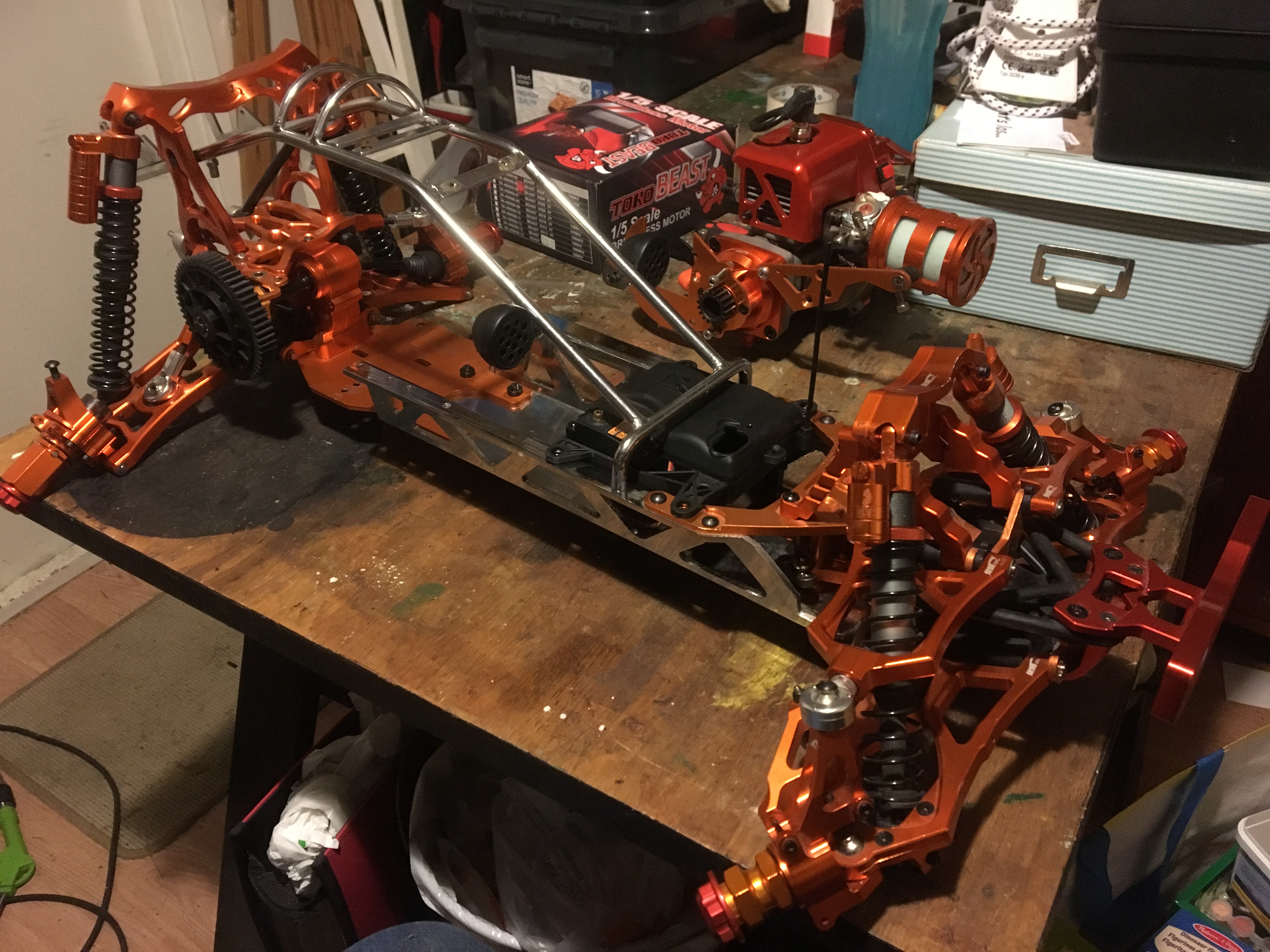 Nu står det lite still när man inte har verktygen man behöver... ffa till bensinmotorerna då. Min sista körning var visst lite mer våldsam än jag först trott... passar även på att byta ut klock/pinion hållaren till en från ddm (ingen aning om vad det är för märke men ser bra ut)