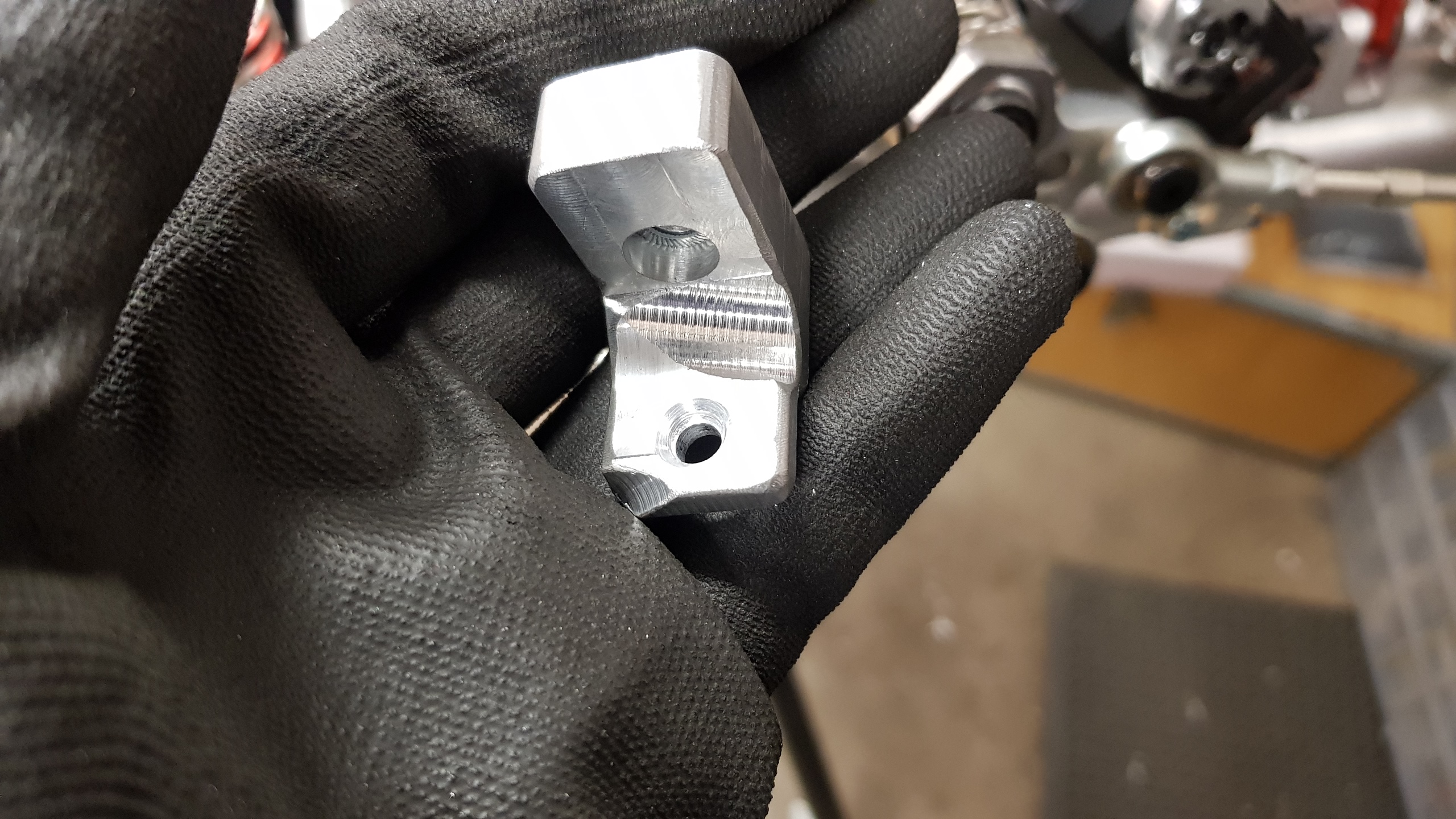 Hittade ett ämne stort nog för att tillverka stödfästet till fördelningslådan i ett stycke, och la ungefär 15h på den, ända fram tills jag fräste av en sida som skulle varit kvar.