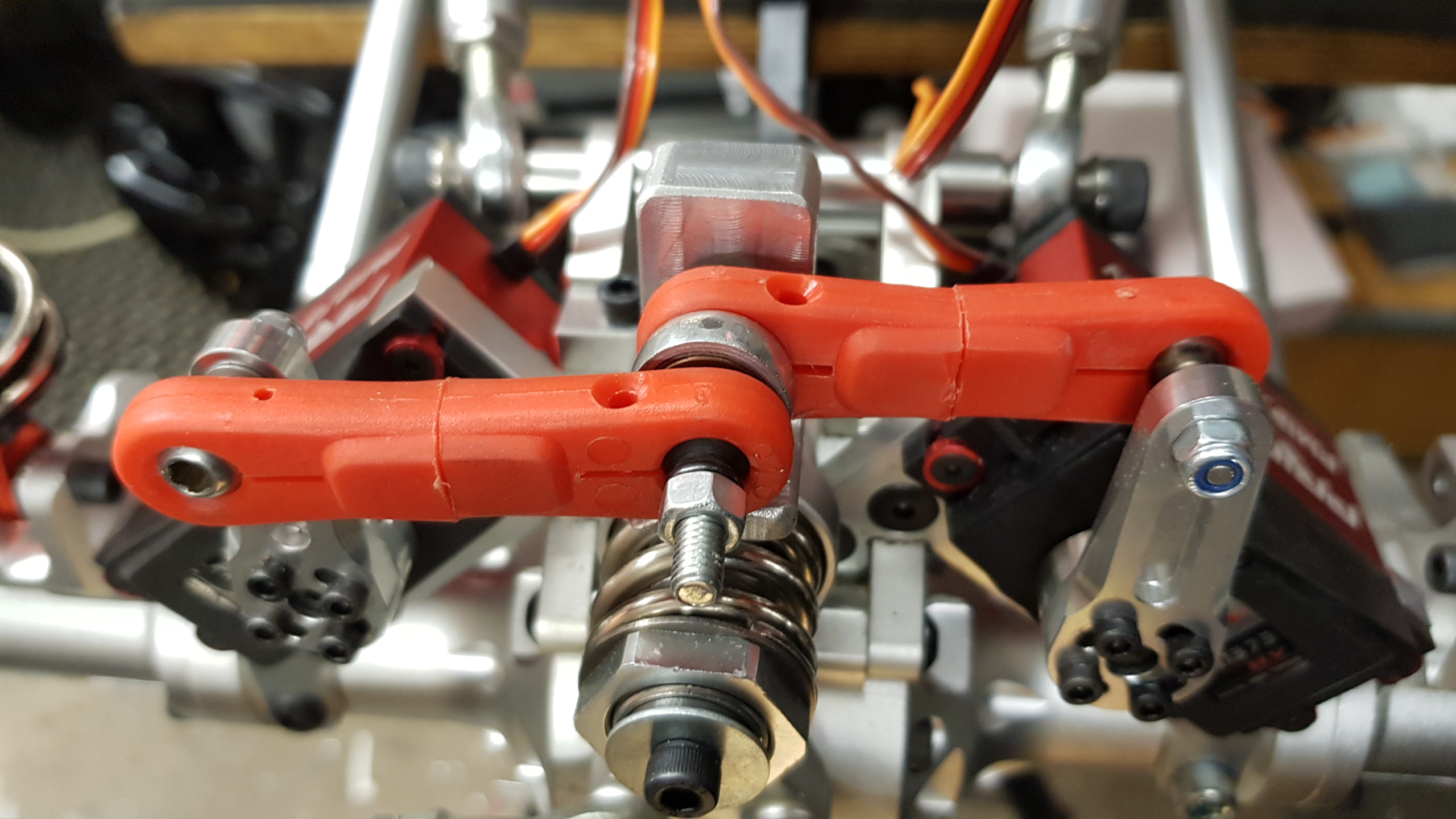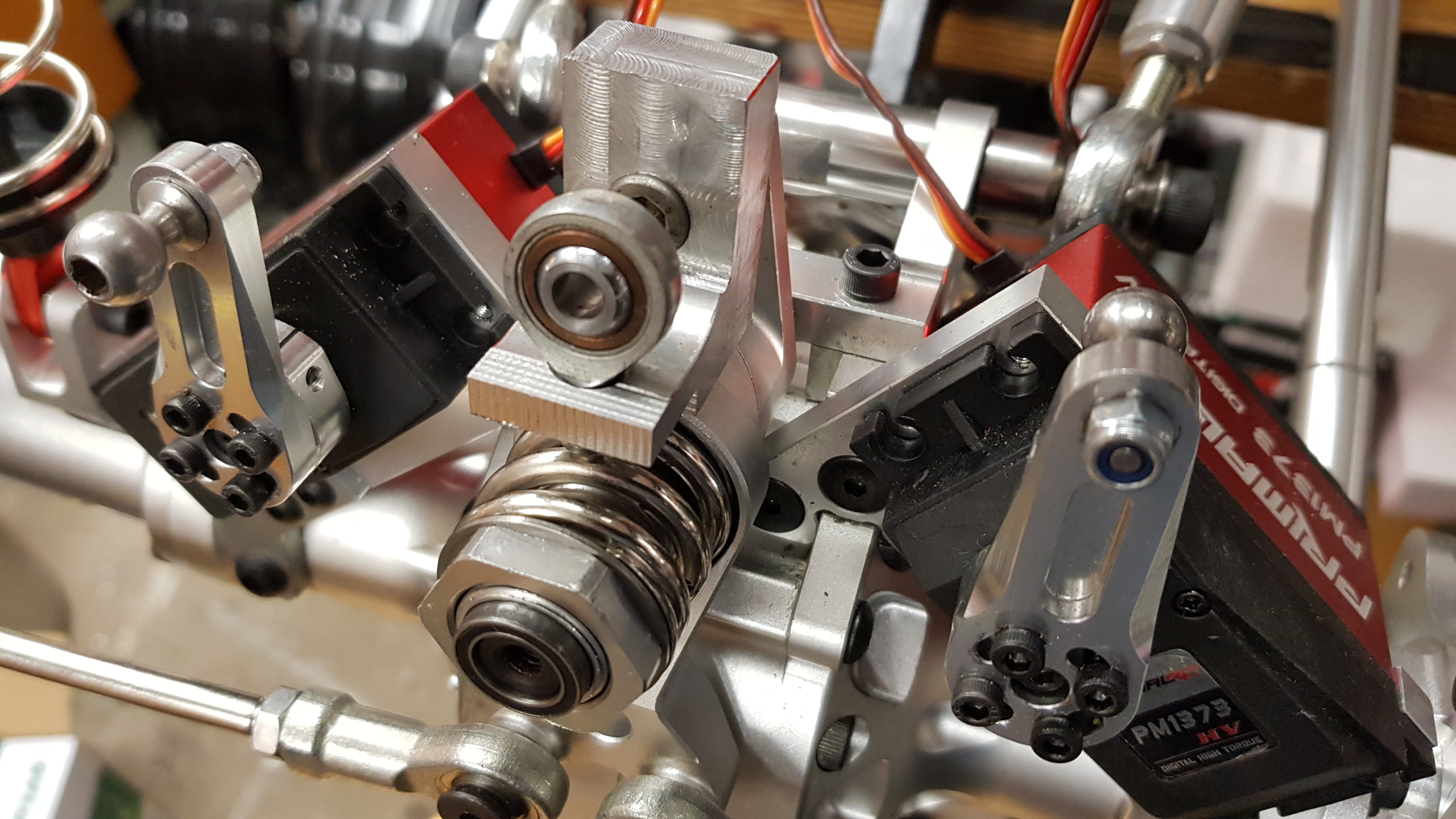 Blir det inte en hel det glapp med en sån setup? Känns som lite tvärt om mot vad jag försöker åstadkomma med de bilar jag har dubbel i. Dvs att all rörelse ska ske i servoräddaren och att rätt intrimmade ska servona dela 50/50 på alla belastningar både i drag och vid smällar.