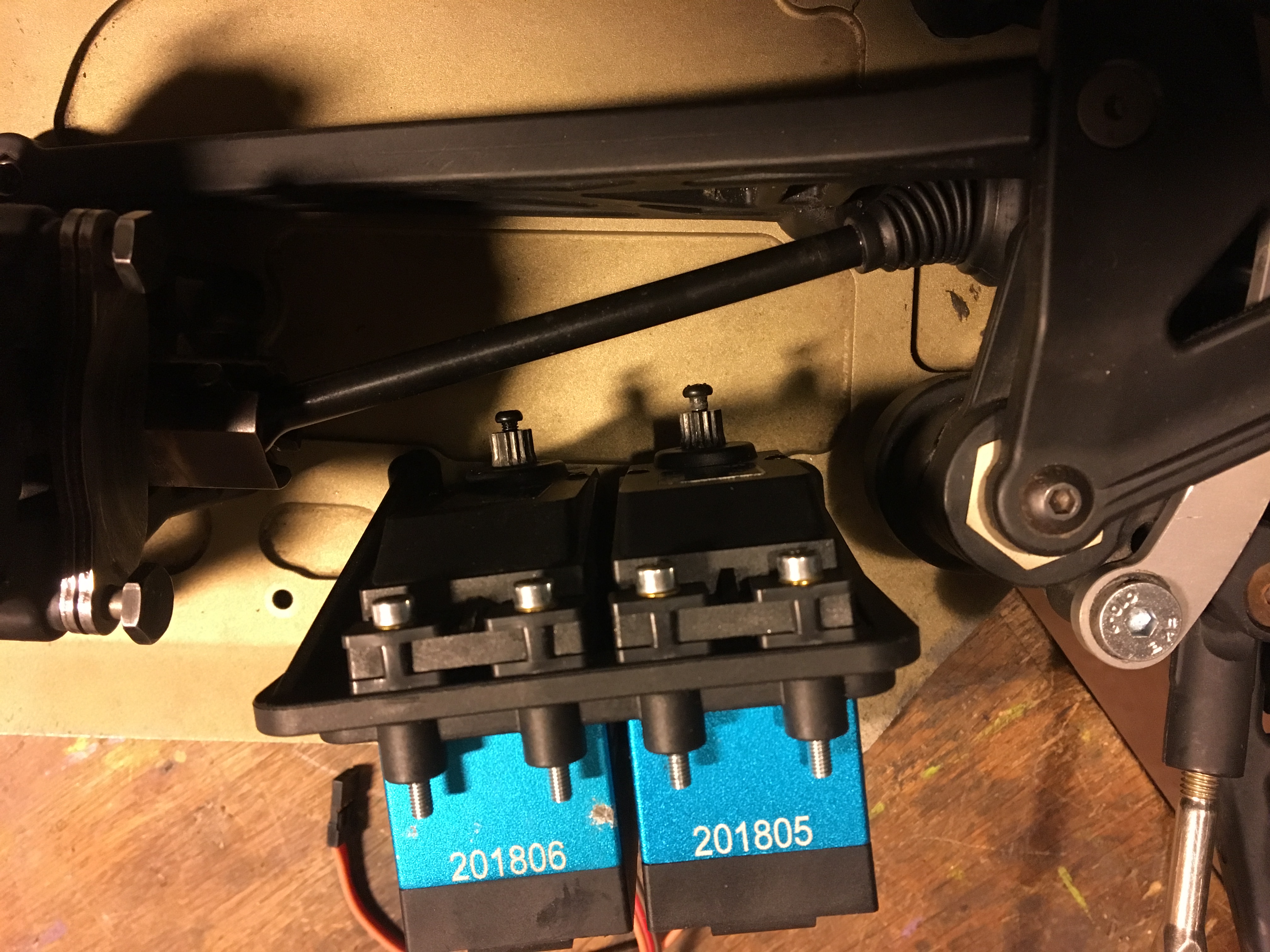 Äsch... billig arm från rovan som inte är för lång (baja-mod på armen på bilden).. men efter vändande av servo och armar fram och tillbaka så är detta det enda sättet armen går ...”fritt”... den snuddar precis axeln vid större rattutslag :/